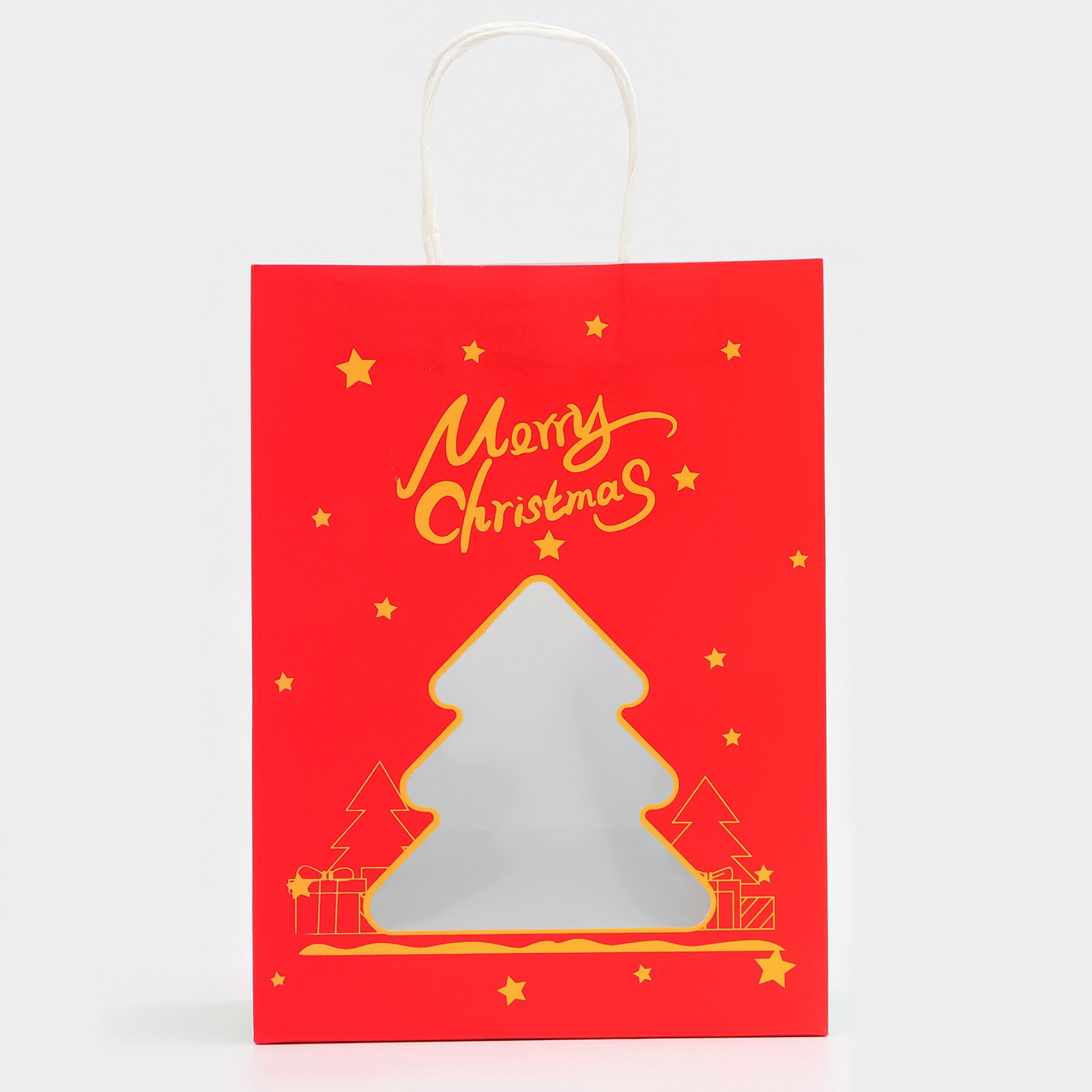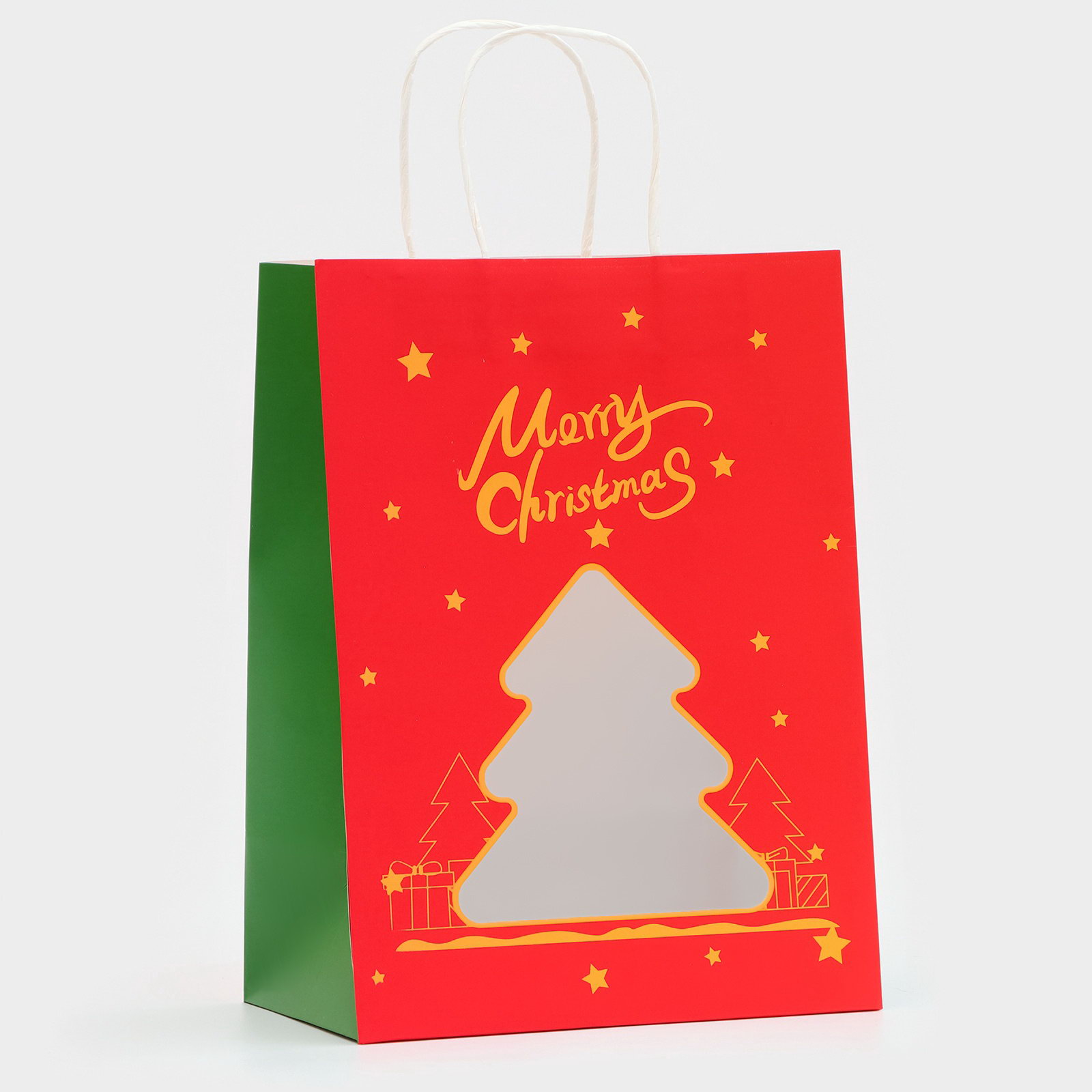 Пакет подарочный бумажный с окном "Ёлка" 30x22x14 см, крафт красный, UPAK LAND, Китай