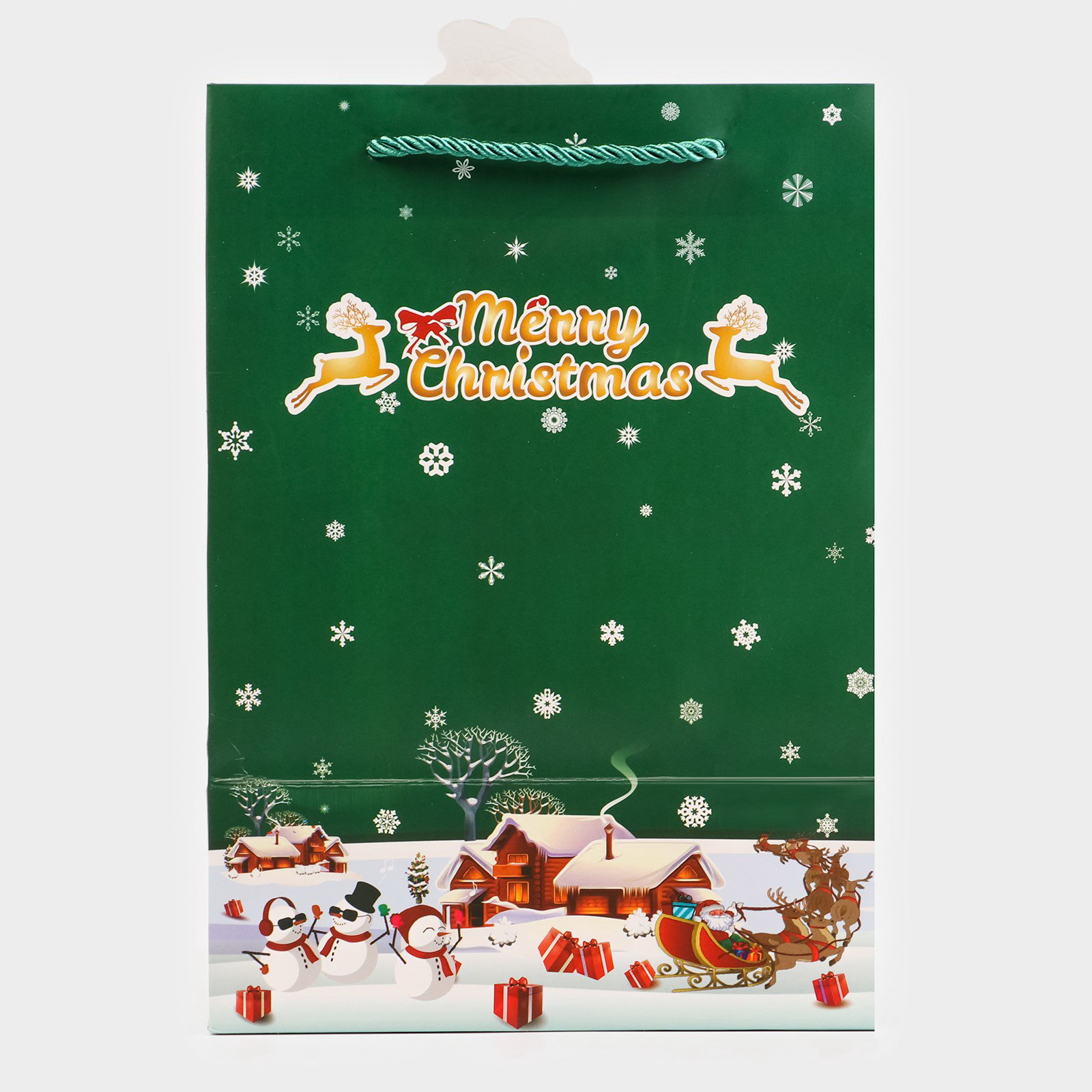 Пакет подарочный ламинированный с окном "Новый Год", тиснение, 18x25x13 см, зеленый, UPAK LAND, Китай