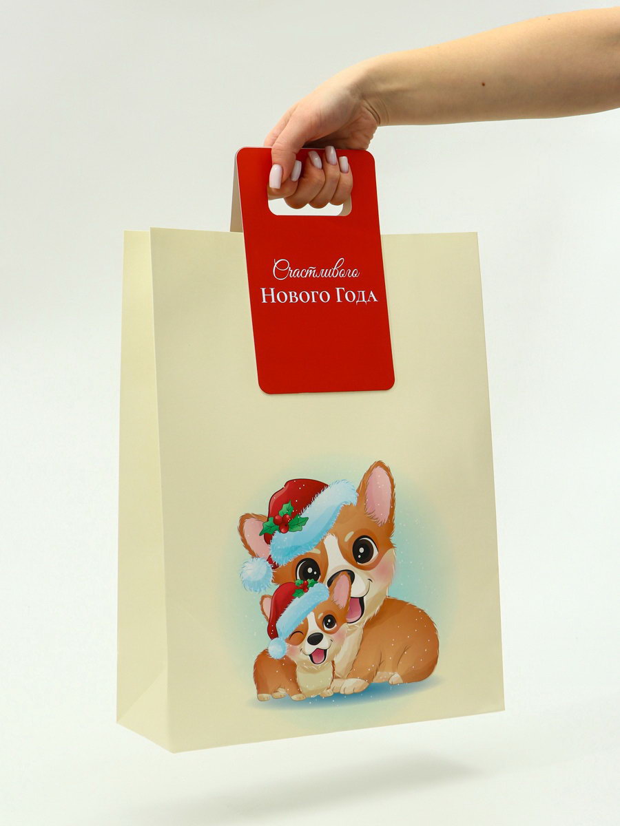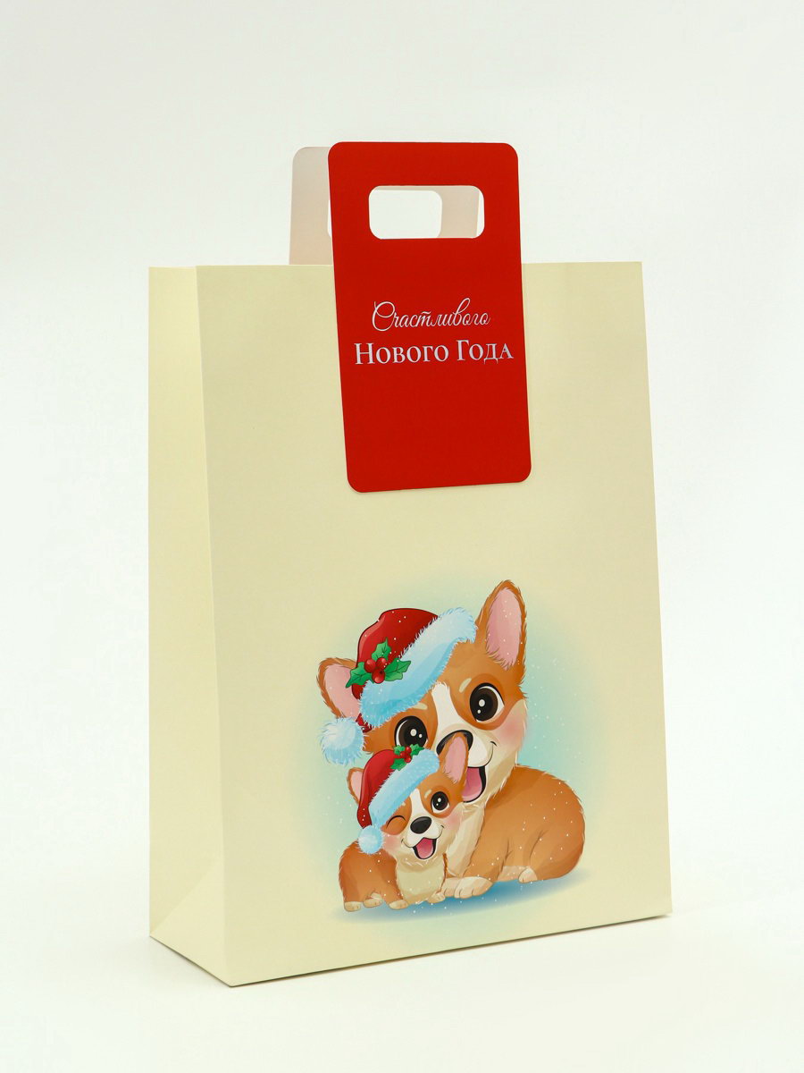 Пакет подарочный с вырубной ручкой "Корги" 30x40x12 см см, красный, UPAK LAND, Китай