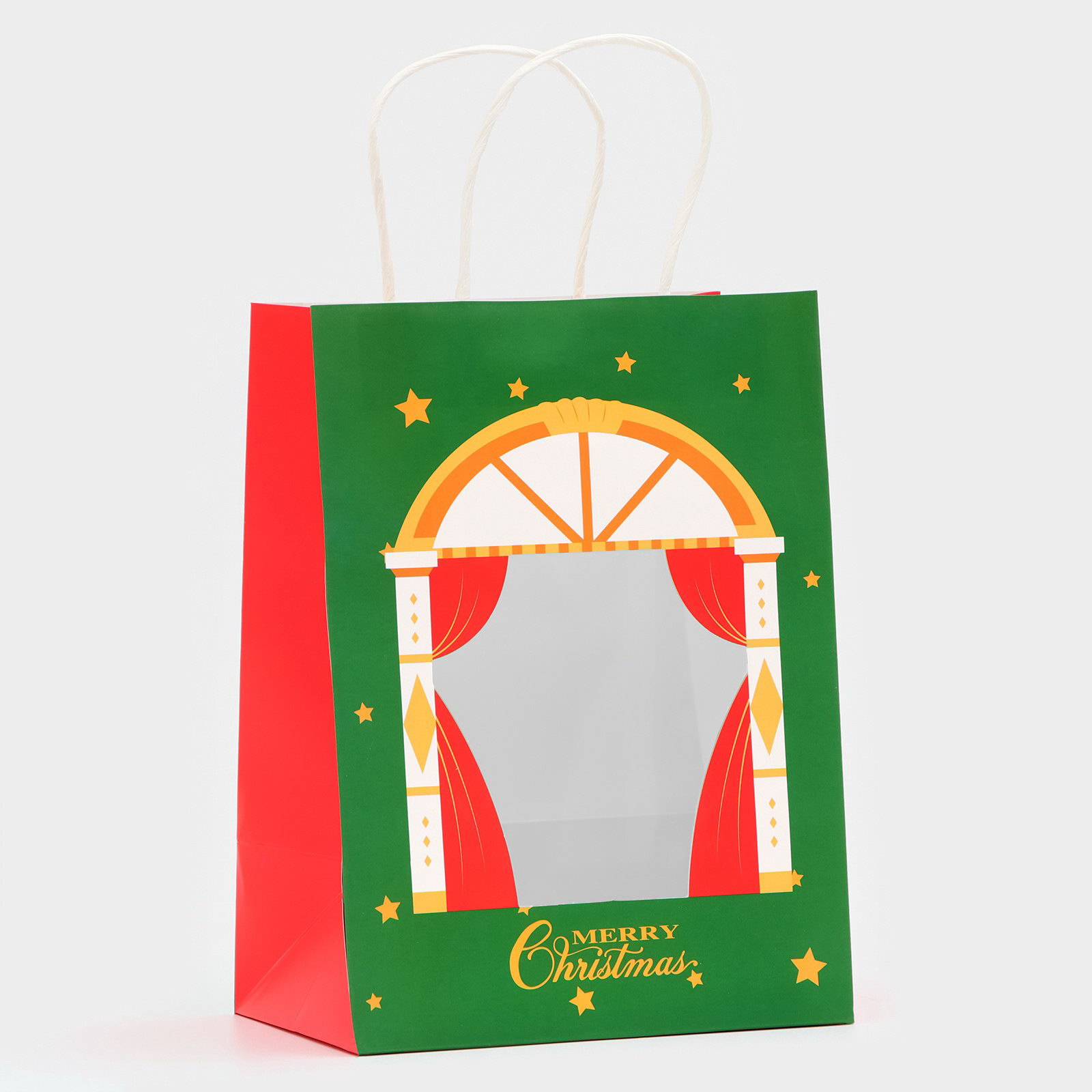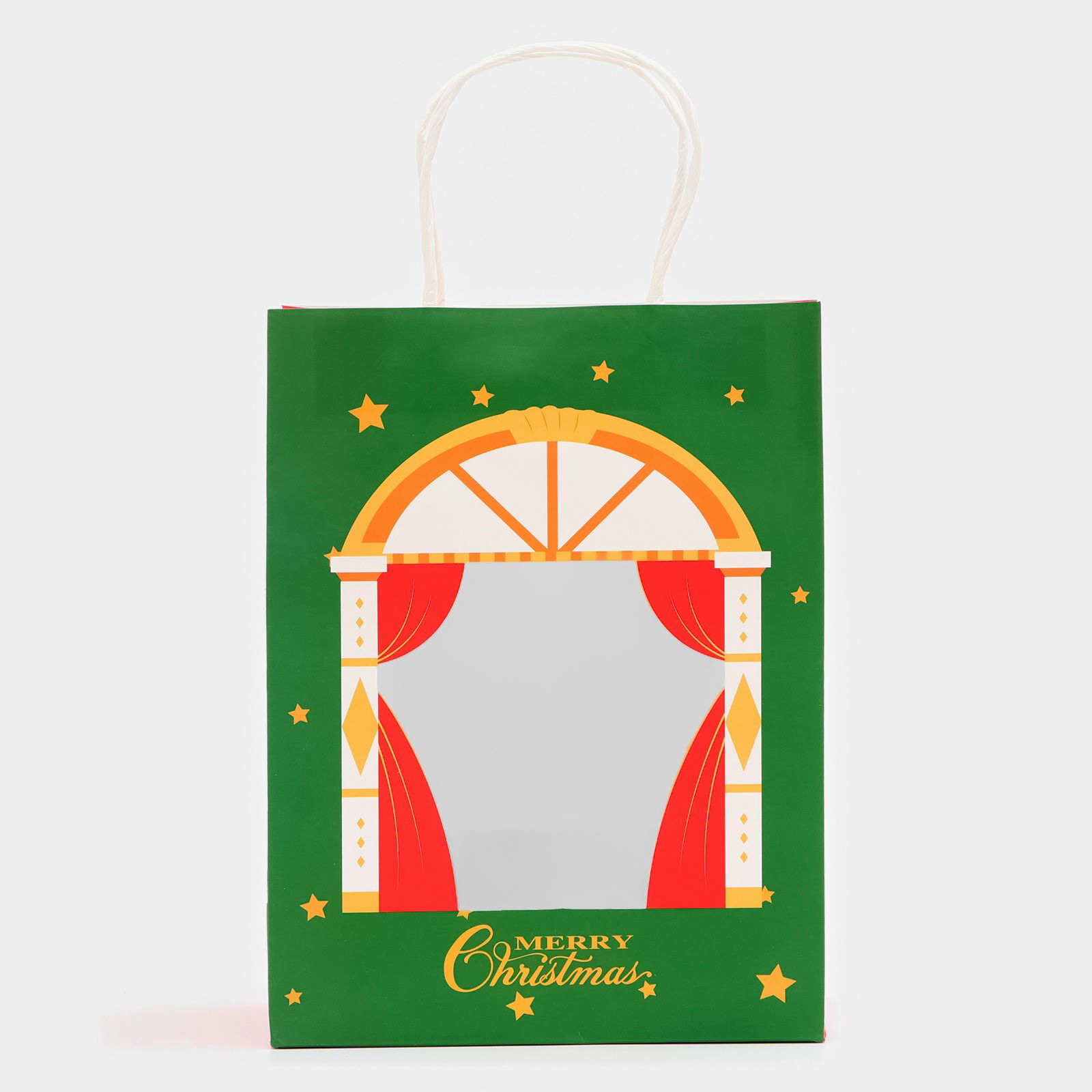 Пакет подарочный бумажный, с окном "Театр" 19x26x13 см, крафт зеленый, UPAK LAND, Китай