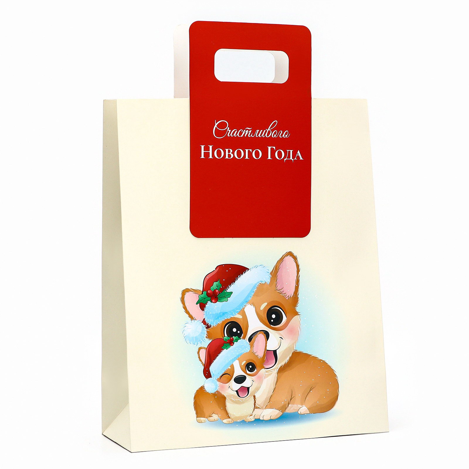 Пакет подарочный с вырубной ручкой "Корги" 26x32x10 см, красный, UPAK LAND, Китай