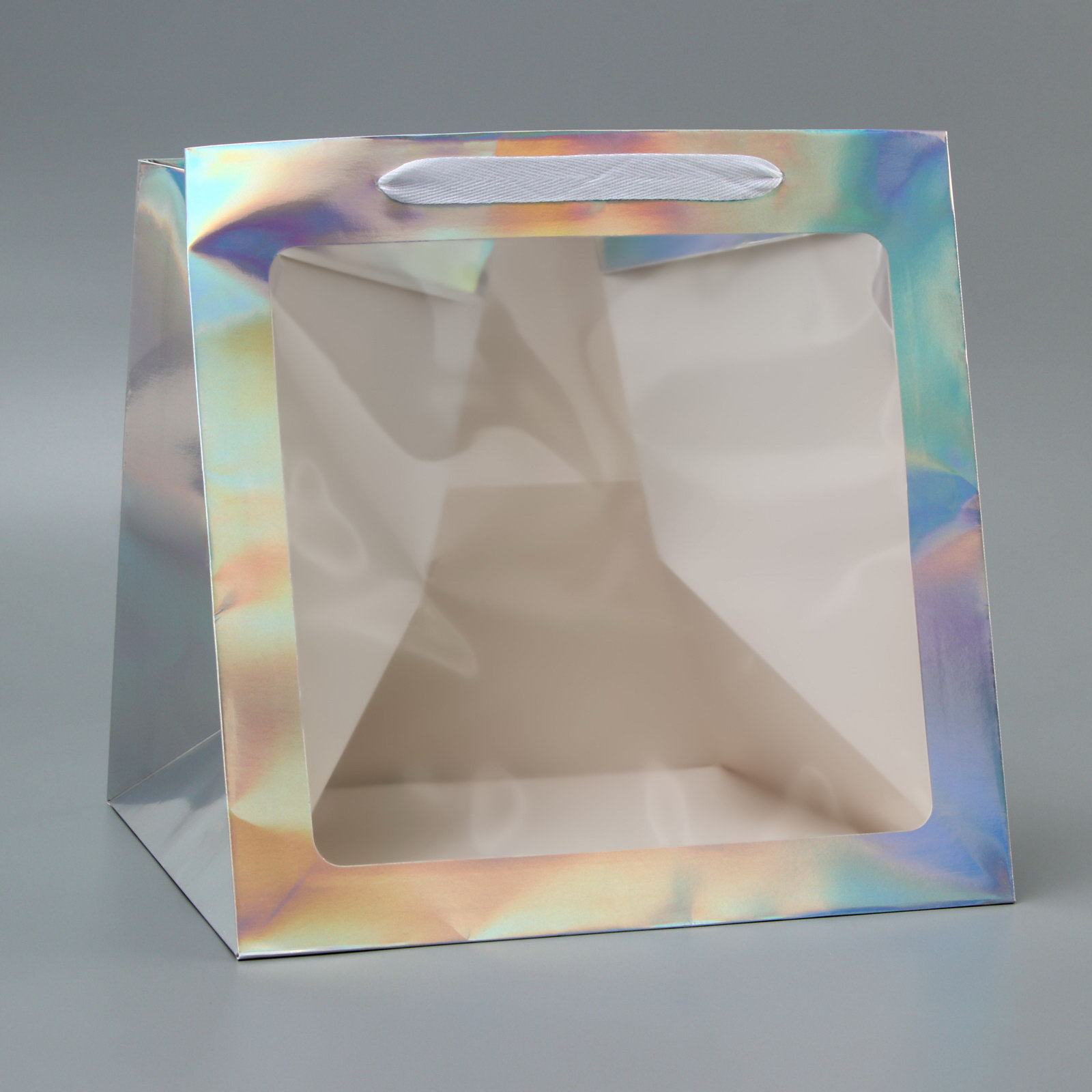 Пакет для торта с квадратным дном и окном, голографический, 30x30x30 см, UPAK LAND, Китай