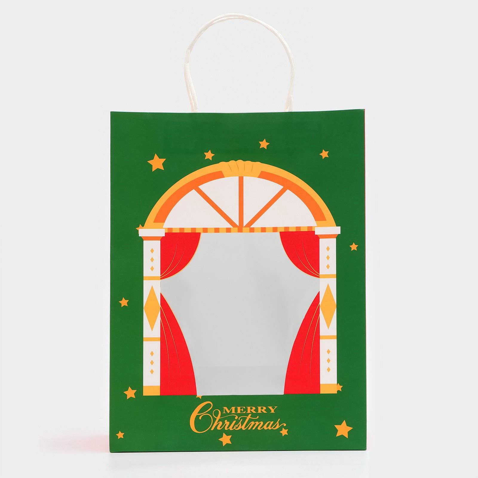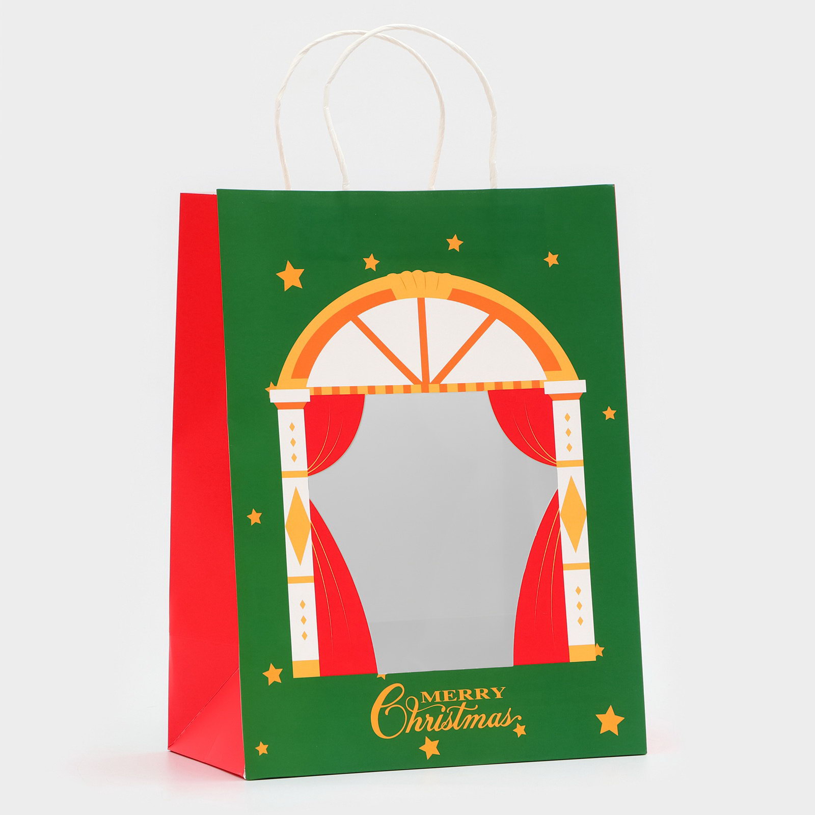 Пакет подарочный с окном "Театр" 26x35x16 см, зеленый, UPAK LAND, Китай