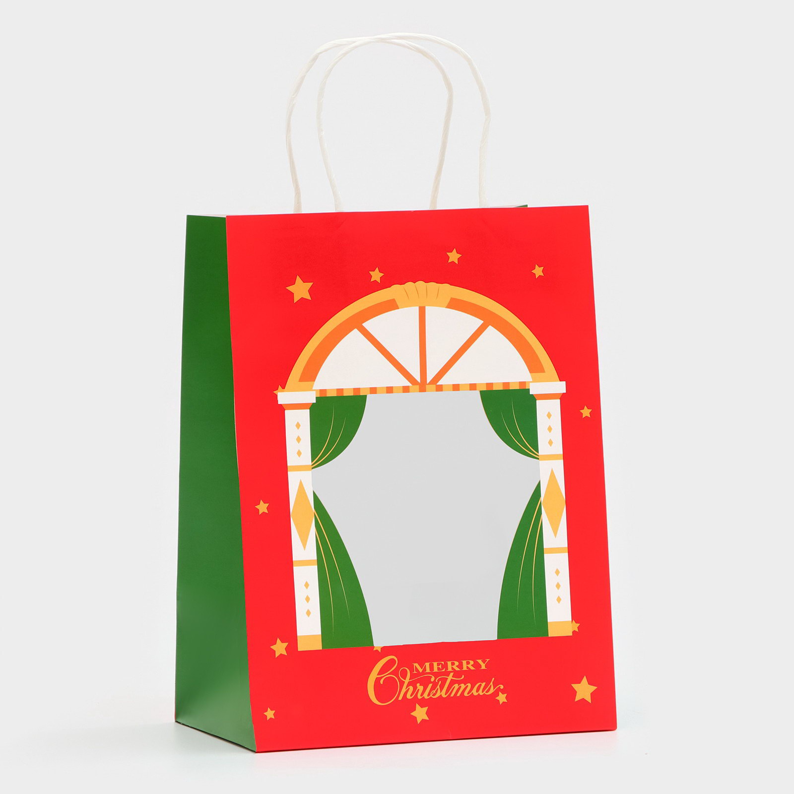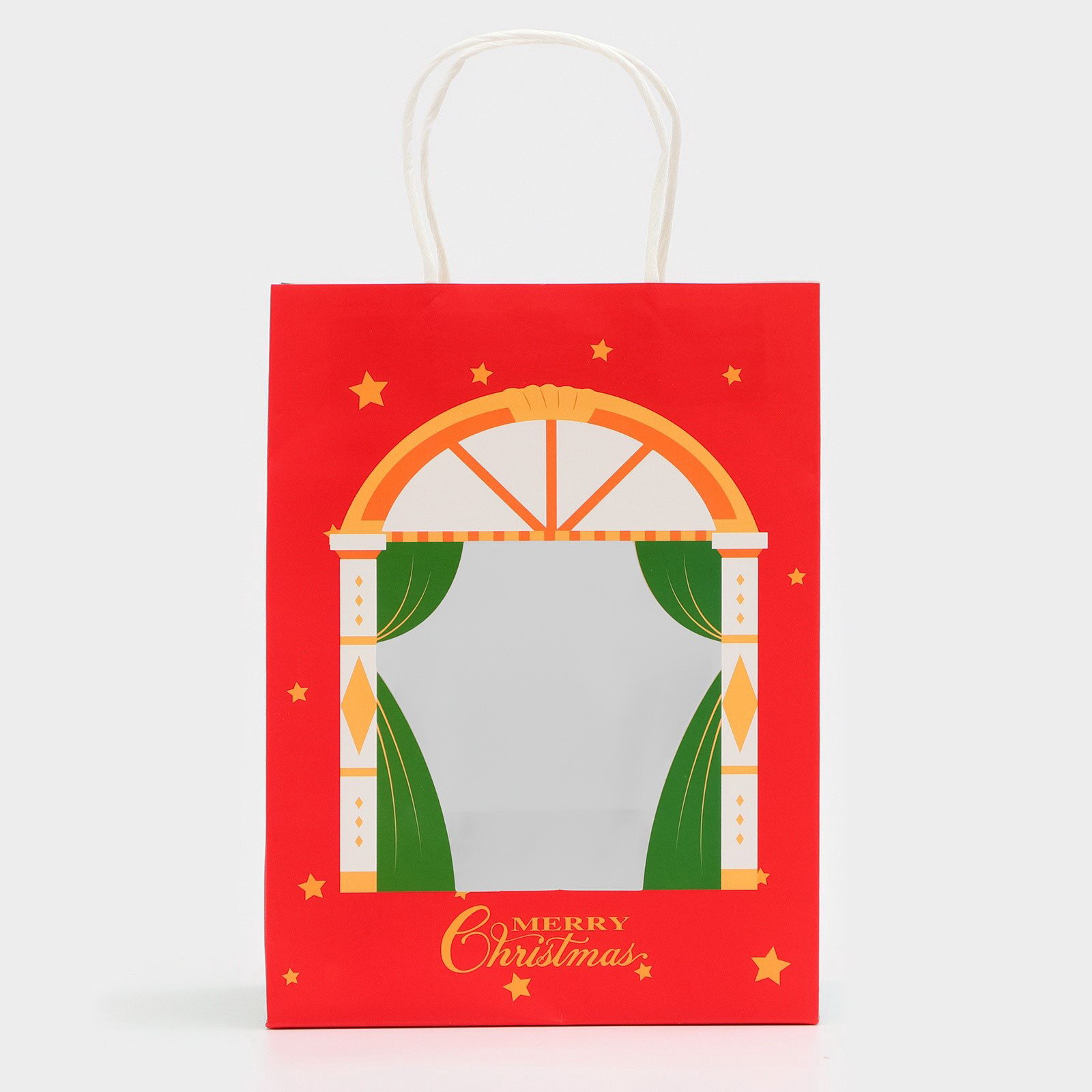 Пакет подарочный с окном "Театр" 19x26x13 см, красный, UPAK LAND, Китай