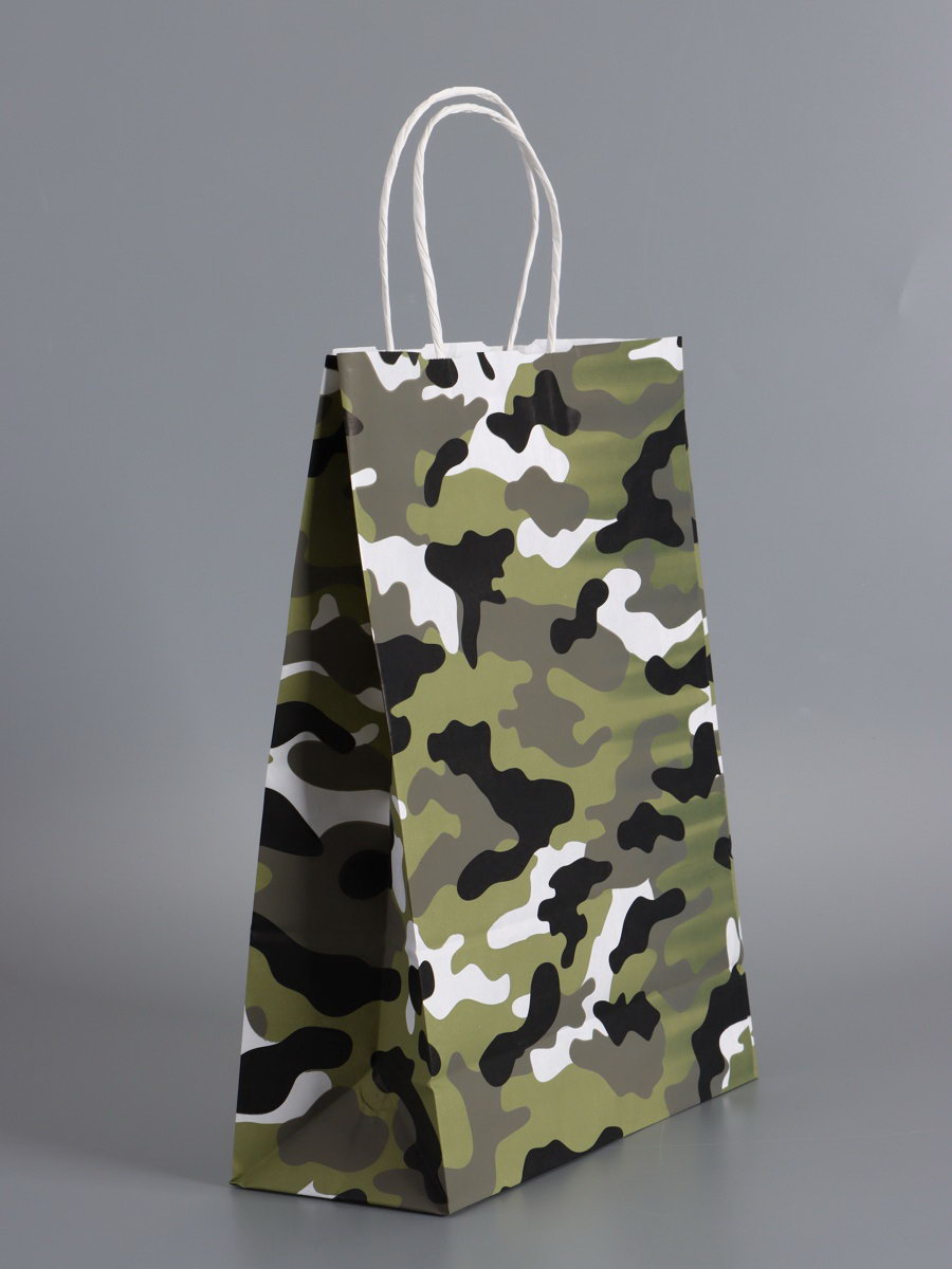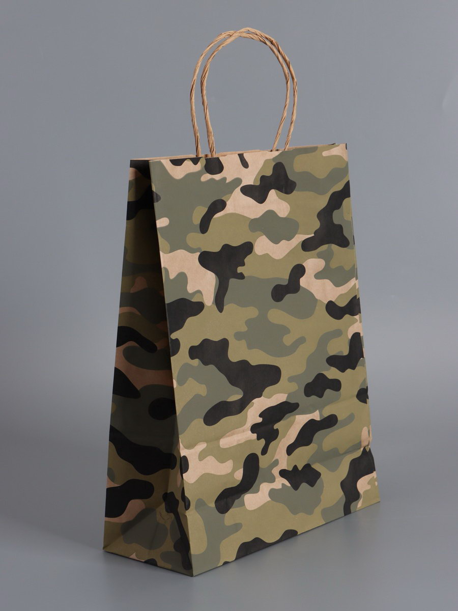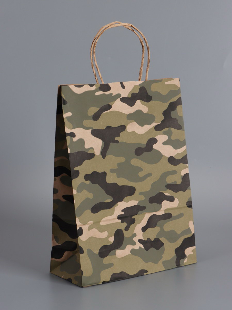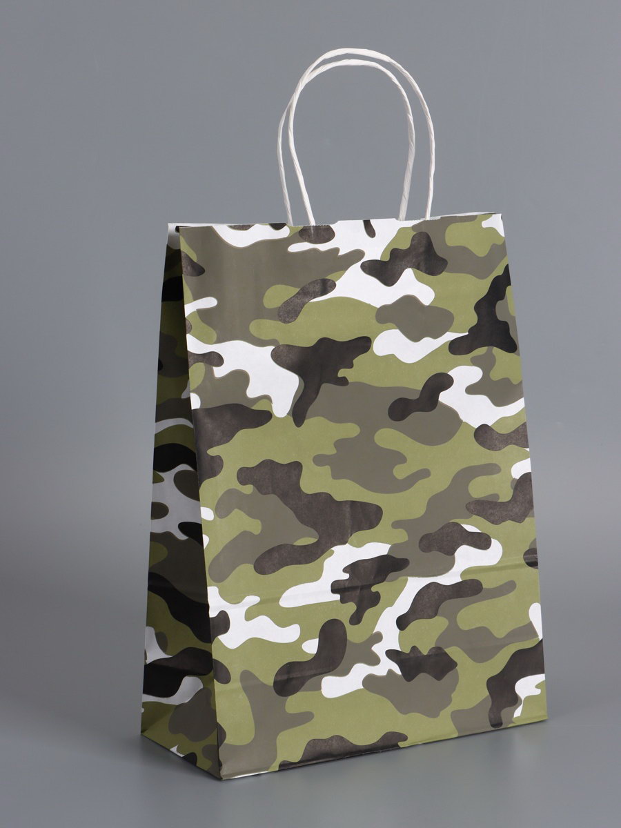 Пакеты подарочные крафт "23 Февраля", камуфляж, 24x10.5x32 см, набор 4 шт., UPAK LAND, Россия