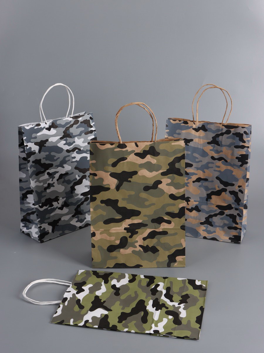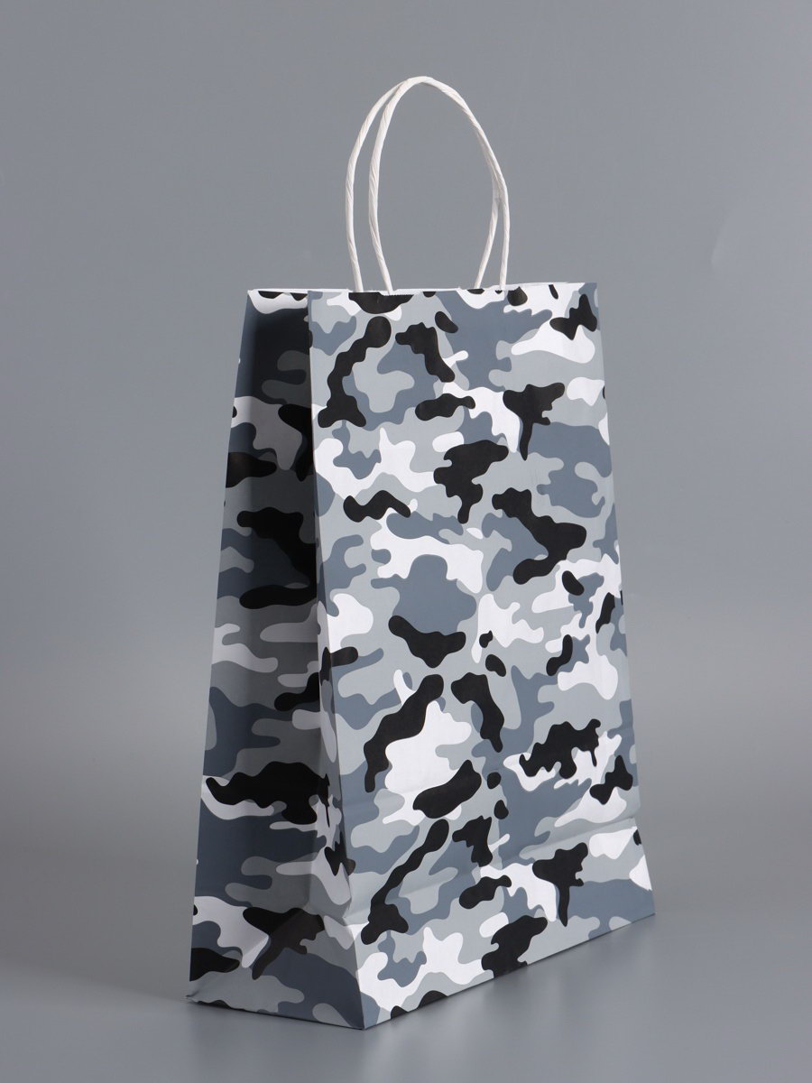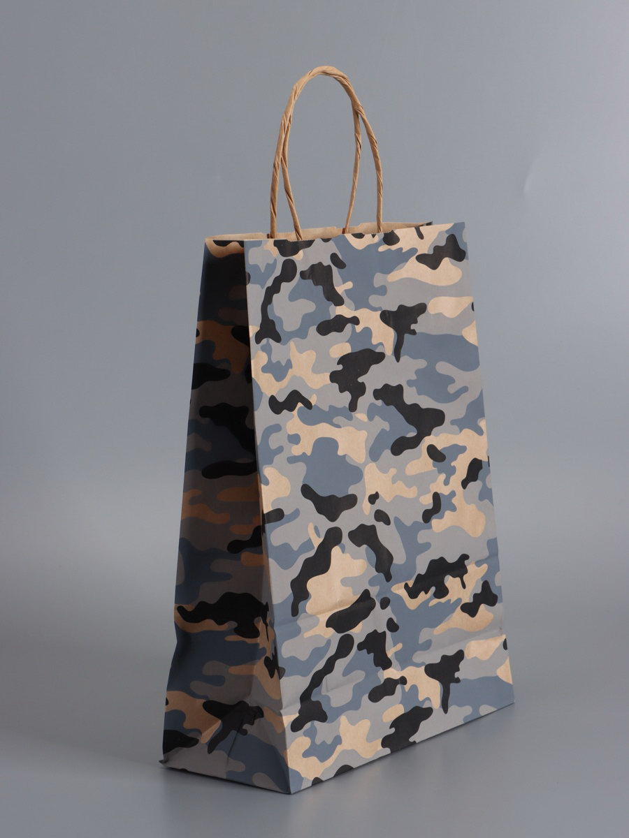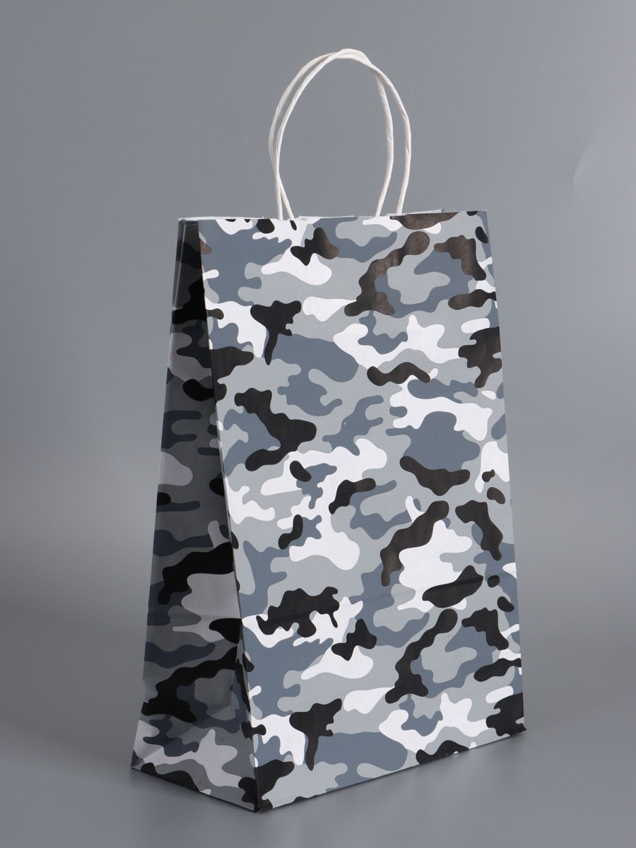 Пакеты подарочные крафт "23 Февраля", камуфляж, 24x10.5x32 см, набор 4 шт., UPAK LAND, Россия