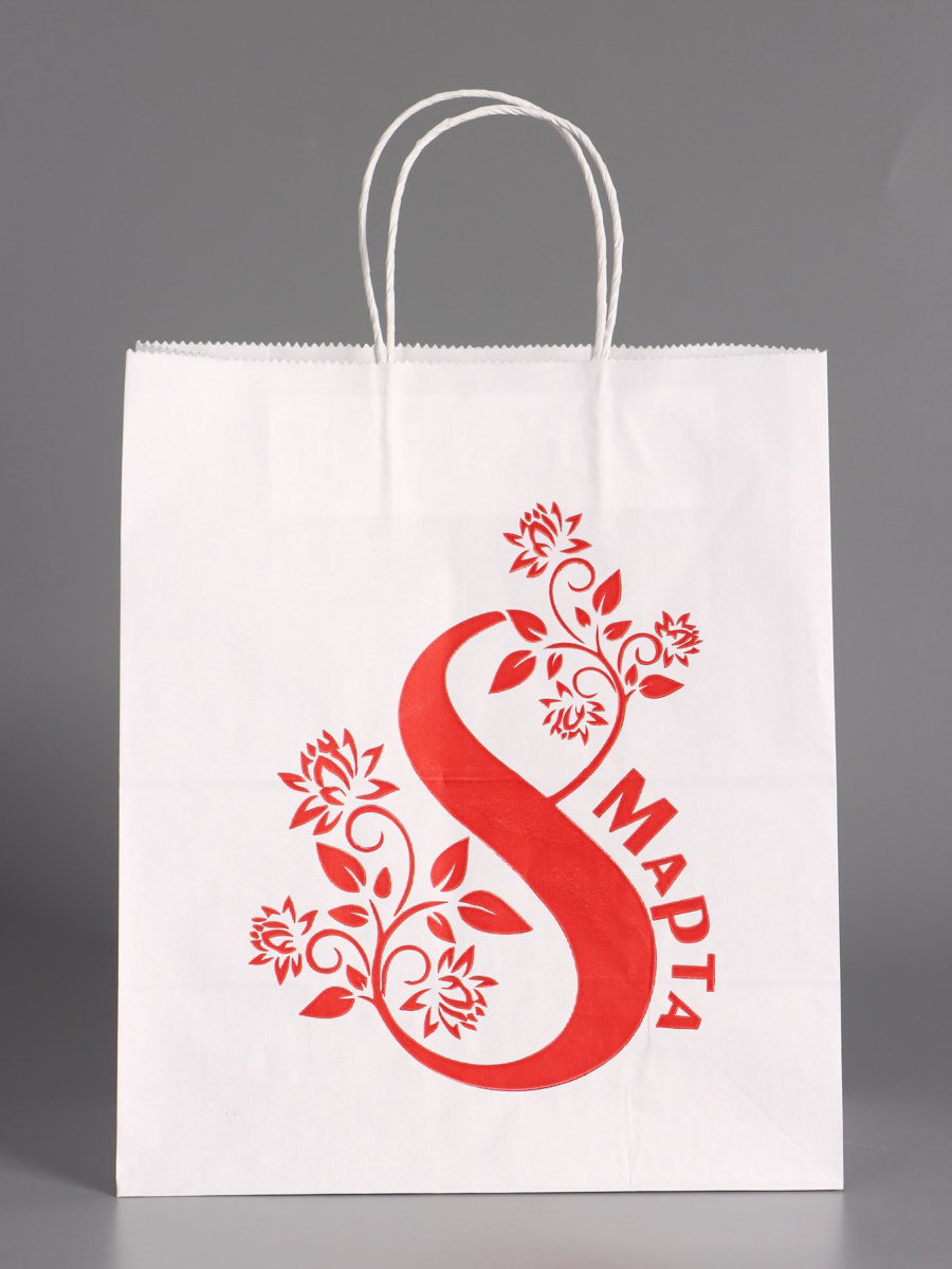 Пакет бумажный подарочный, "С 8 марта Цветочек", белый, 24x14x28 см, UPAK LAND, Россия