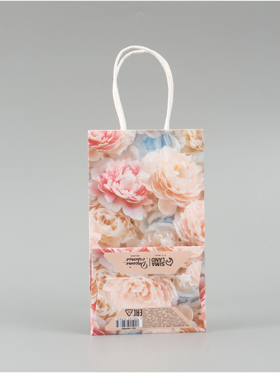 Пакет подарочный "Цветы", 12 x 21 x 9 см, 9x12x21 см., Дарите Счастье, Китай