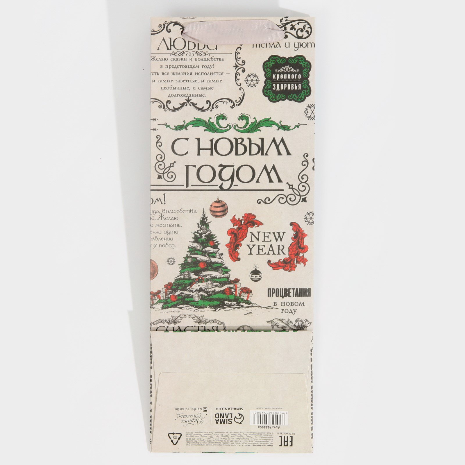 Размер упаковки: 13 x 35 x 0.3 см. Цвет: Бежевый Тематика: Новогодняя Для кого: Унисекс tnved: 4819400000 Символ года: Нет Тематика праздника: Новый год Вид ручки: Ручка-лента Отделка пакета: Без отделки Вид: Ручка-лента Особенности: Под бутылку Плотность, г/?2: 210 | ||