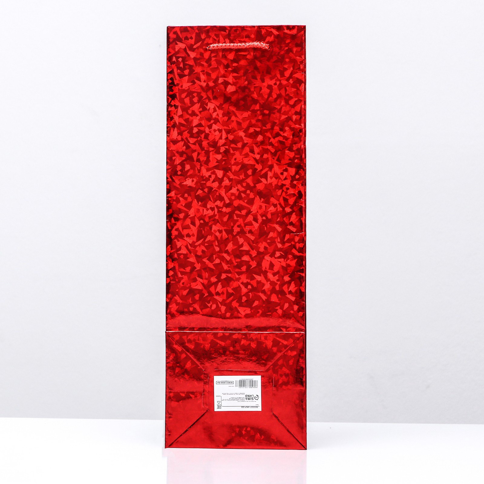 Пакет подарочный, новогодний под бутылку фольгированный, "Красный" 35x12x9 см, 12x35x9 см., UPAK LAND, Китай