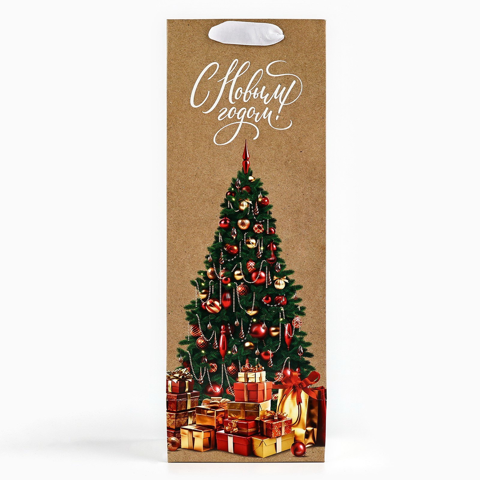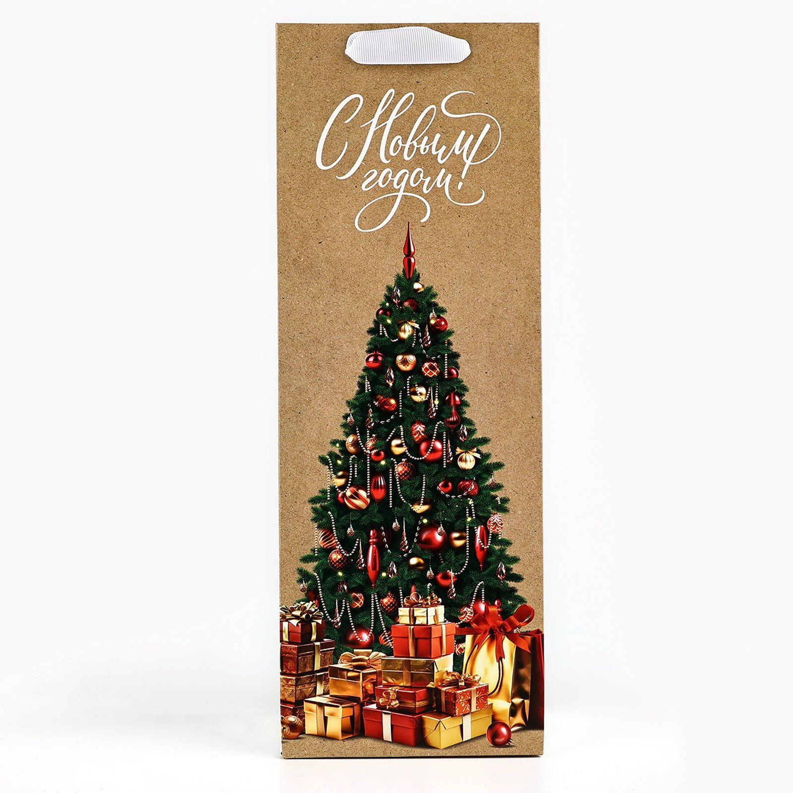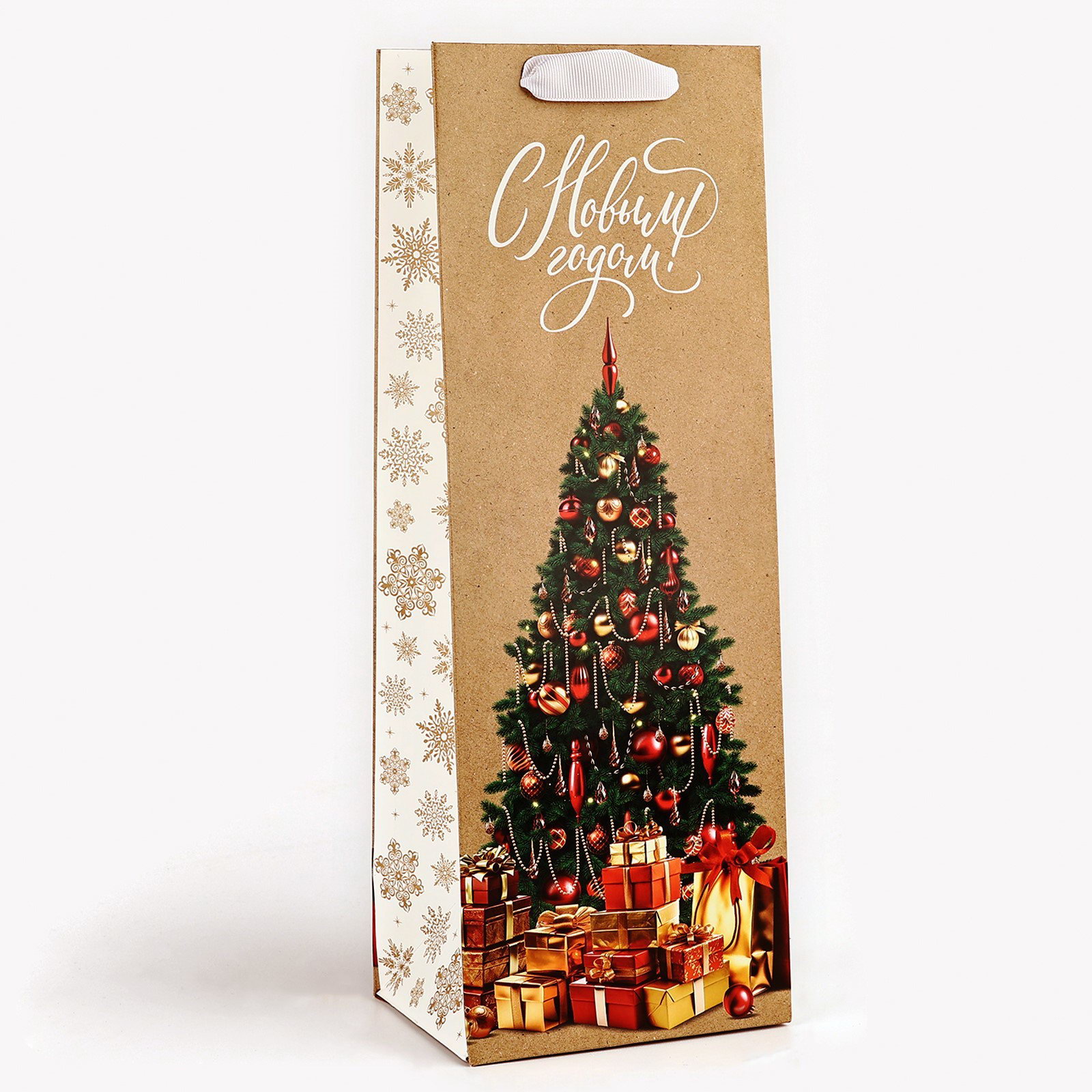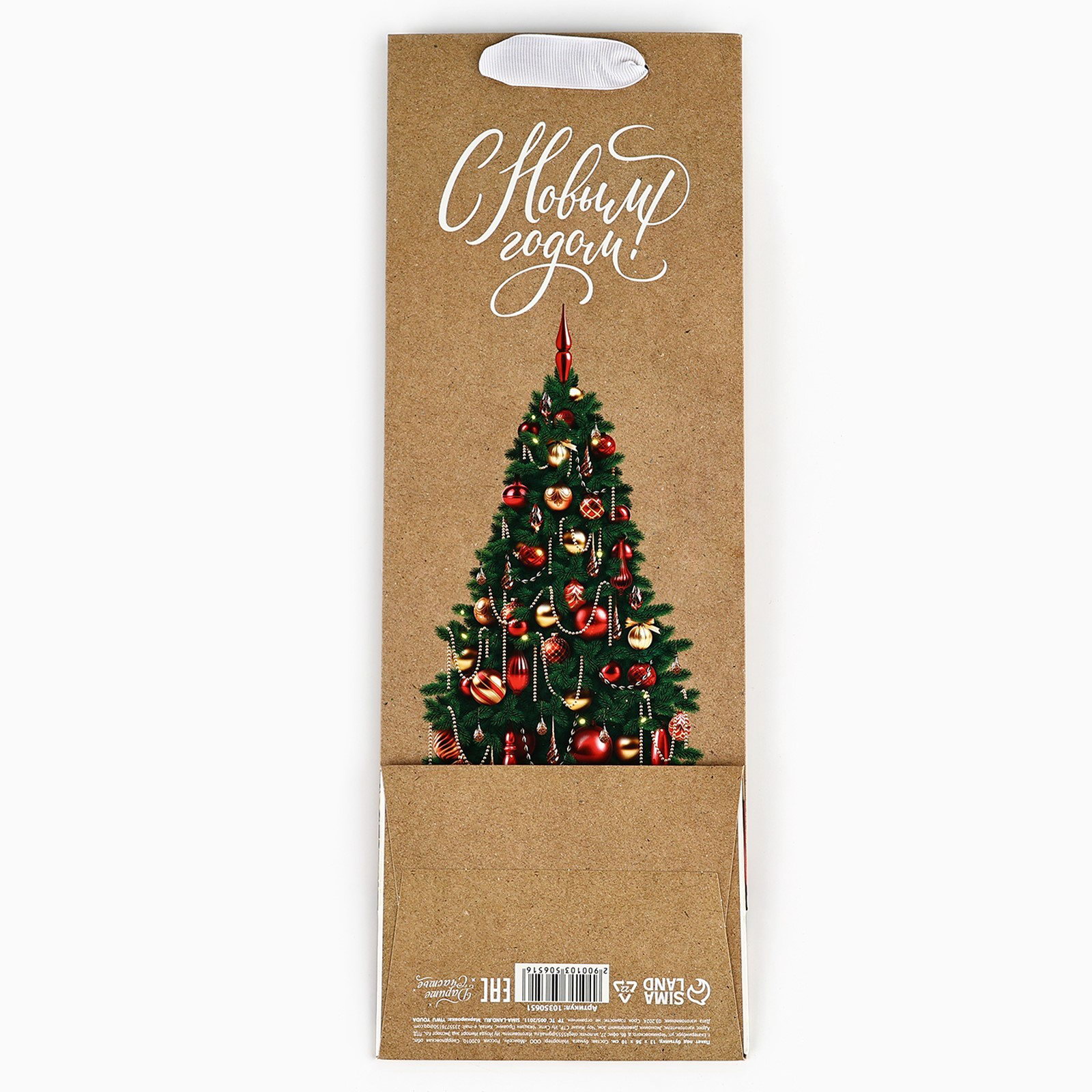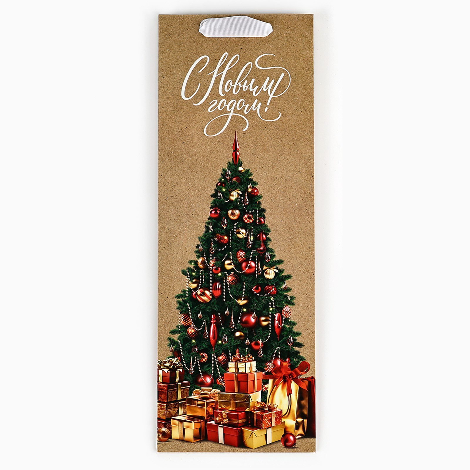 Пакет подарочный под бутылку новогодний "С Новым годом", 13x35x10 см, 36x13x10 см., Дарите Счастье, Китай