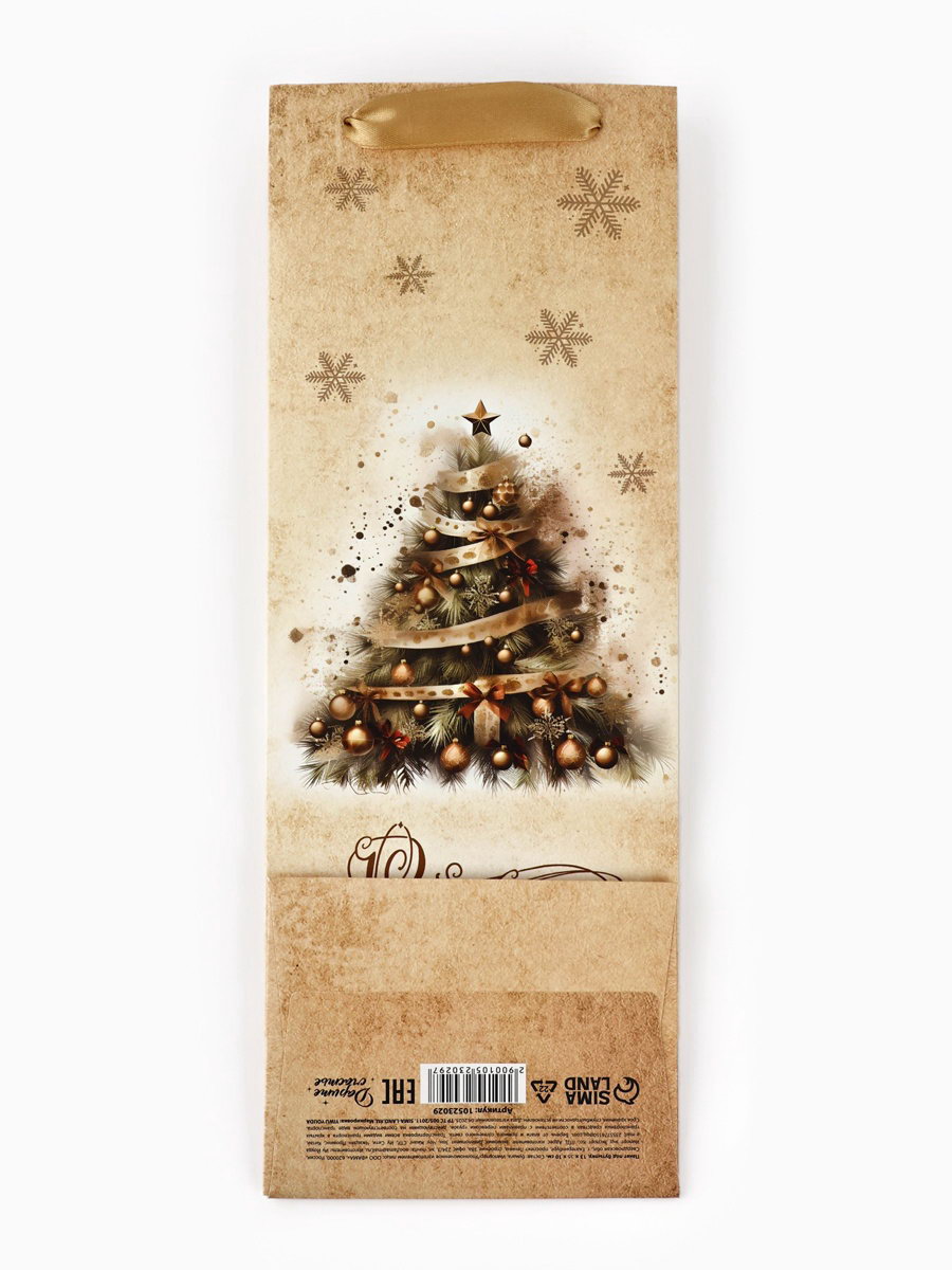 Размер упаковки: 36 x 0.3 x 13 см. Тематика праздника: Новый год Отделка пакета: Декор Вид ручки: Ручка-лента Примерный размер: S (~ 12см x 16см) Тематика: Новогодняя tnved: 4819400000 Для кого: Унисекс Цвет: Бежевый Особенности: Под бутылку Символ года: Нет Дизайн: С рисунком, надписью Подарочный пакет новогодний идеальный выбор для упаковки бутылки.
