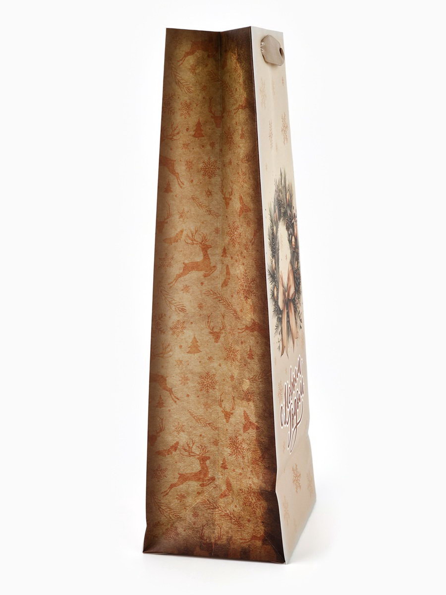 Пакет подарочный новогодний под бутылку "С новым годом!", 13x36x10 см, 36x13x10 см., Дарите Счастье, Китай