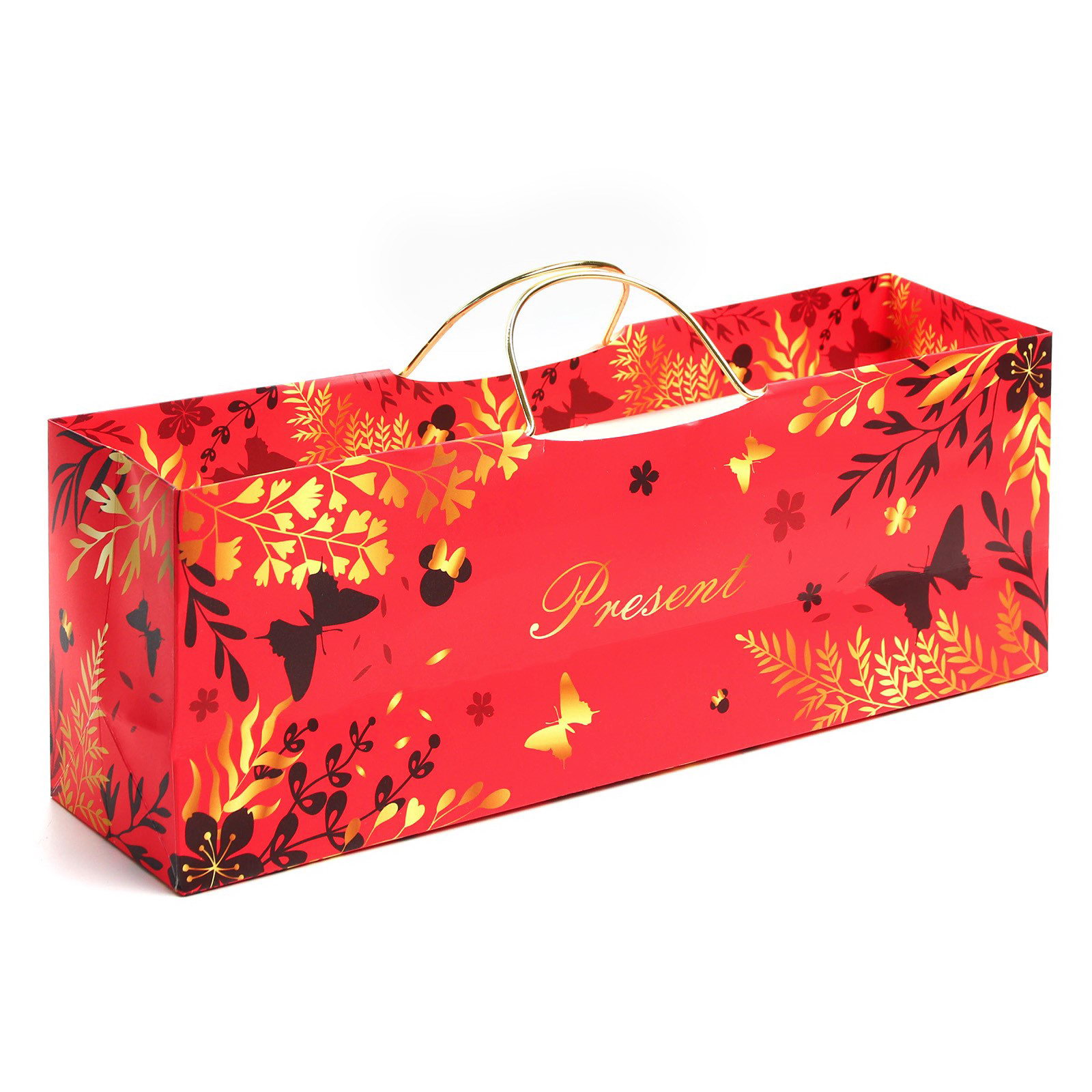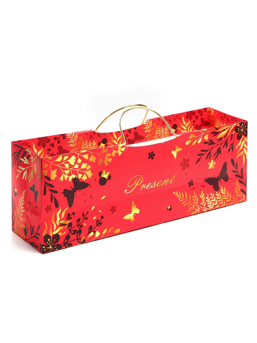 Пакет подарочный под бутылку с тиснением Present, Минни Маус, 35.5x12.5x9 см, 9x35.5x12 см., Дарите Счастье, Китай