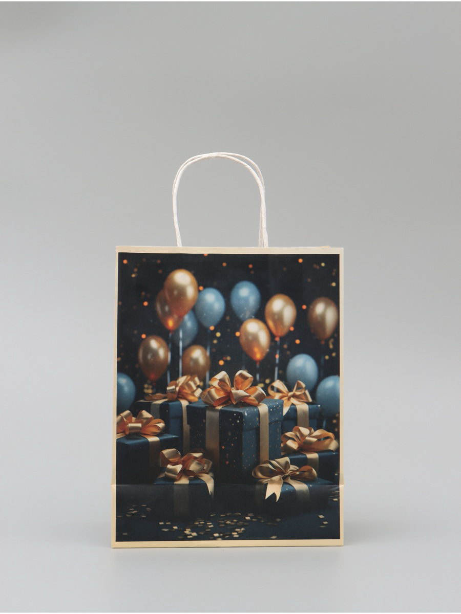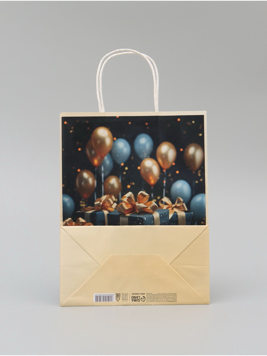 Тематика: Воздушные шары, Праздник, Шары Тематика праздника: День рождения, Универсальная тематика Вид: Бумажный пакет, Крафт, Крафт пакет, Подарочный пакет Вид упаковки: Крафтовая упаковка, Пакет бумажный, Пакет подарочный Размер упаковки: 21 x 0.3 x 37 см. Вид ручки: Крученый шпагат Примерный размер: ML (~ 23см x 27см) Плотность, г/?2: 120 Особенности: Креативный Отделка пакета: Крафт Расширение: Боковая складка Форма пакета: Вертикальный Для кого: Унисекс tnved: 4819400000 Дизайн: С рисунком, надписью Цвет: Чёрный Подарочный крафтовый пакет – это стильный и универсальный аксессуар для упаковки подарков, выполненный из плотной крафт-бумаги с плотностью 120 г/?2. Натуральная текстура и минималистичный дизайн делают его идеальным выбором для упаковки подарков на день рождения, юбилей и любые другие праздники.