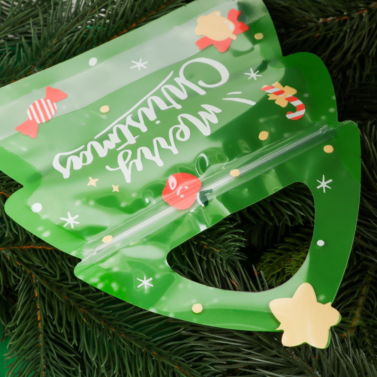 Пакет подарочный новогодний, фигурный "Ёлочка", с zip-lock застежкой, 18.5x6.9x21 см, 20x0.1x21 см., UPAK LAND, Китай