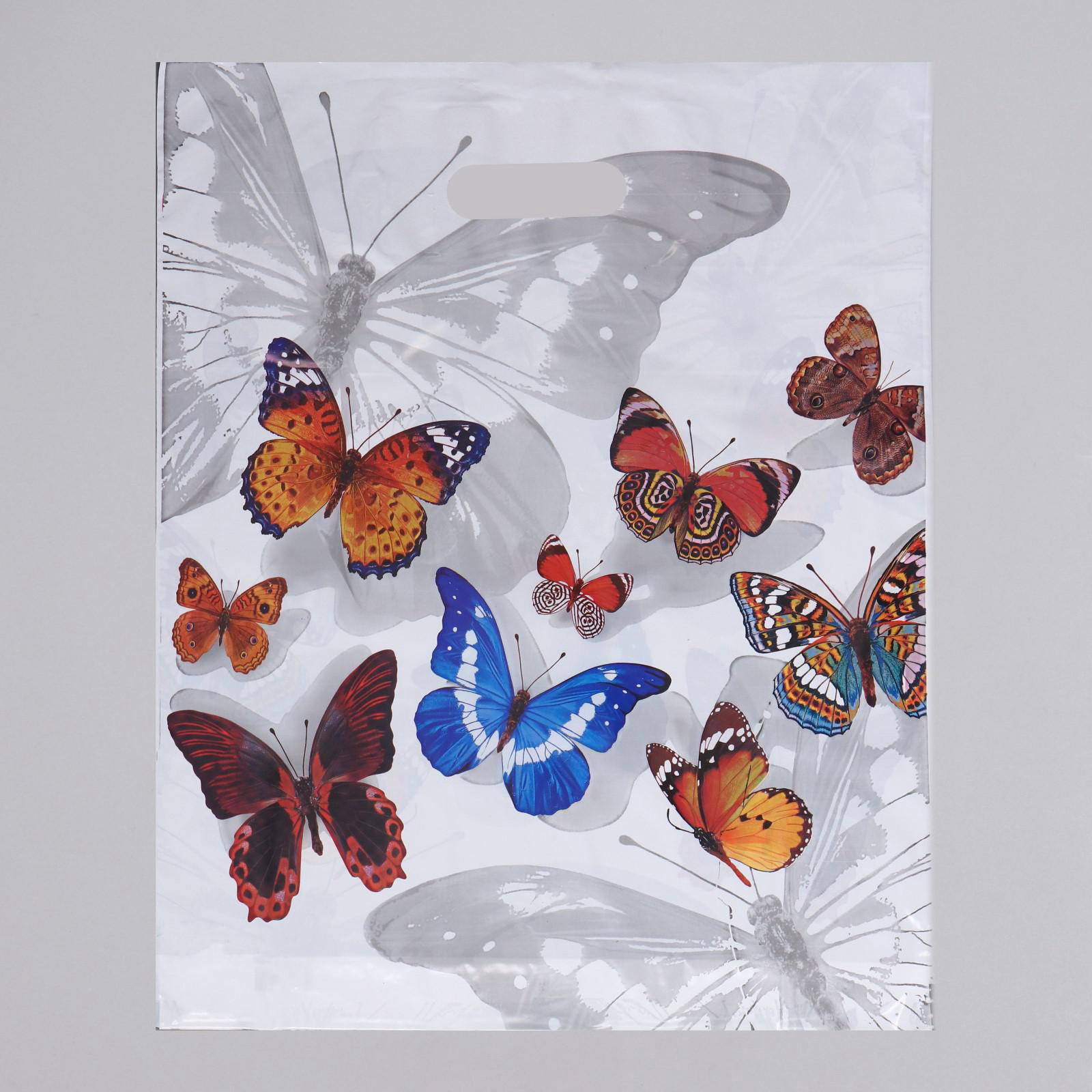 Пакет "Бабочки", полиэтиленовый с вырубной ручкой, 40x47 см, 40x47x0.1 см., Интерпак, Россия
