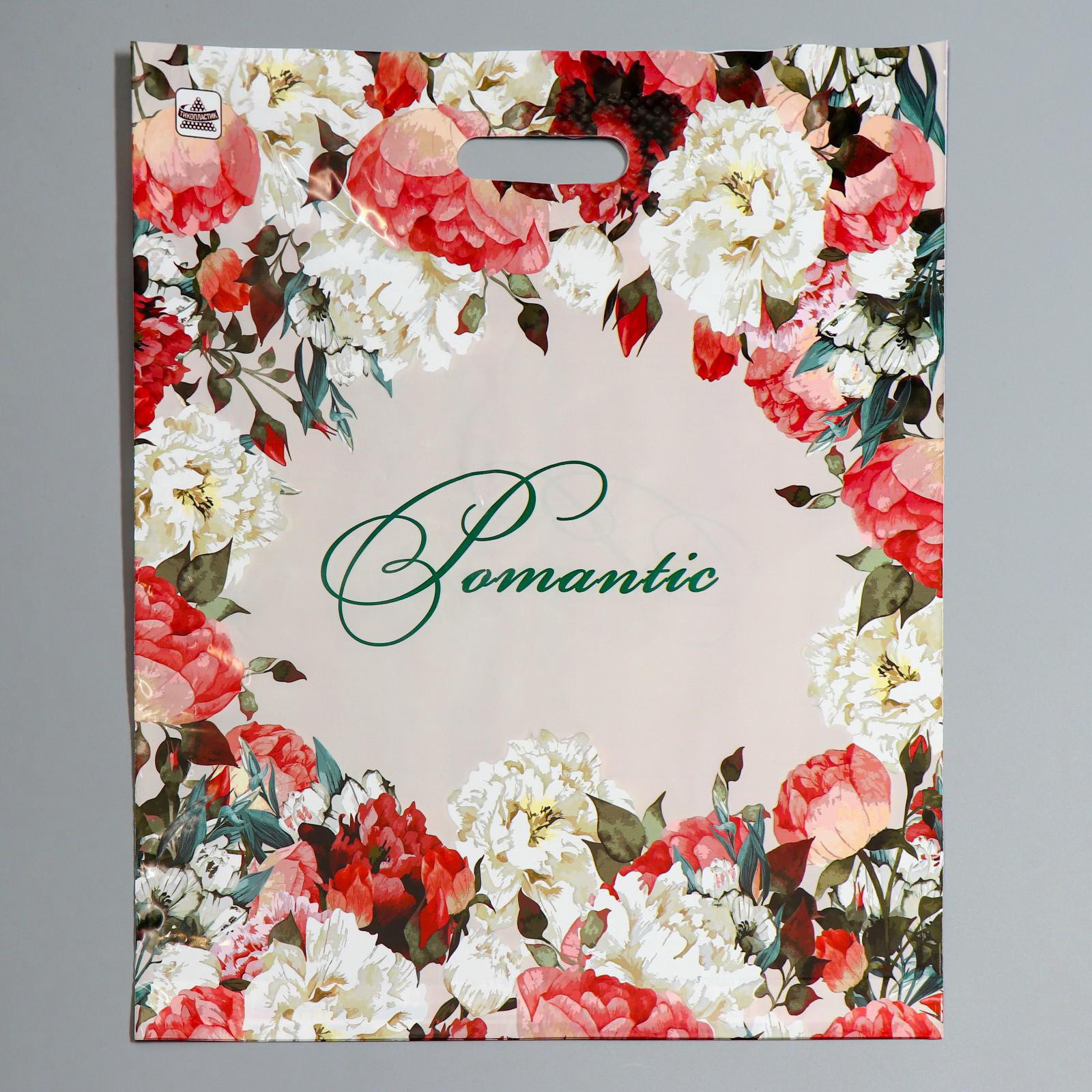 Пакет "Благородные цветы", полиэтиленовый с вырубной ручкой, 38x45 см, 60 мкм, 38x45x0.1 см., ТикоПластик, Россия
