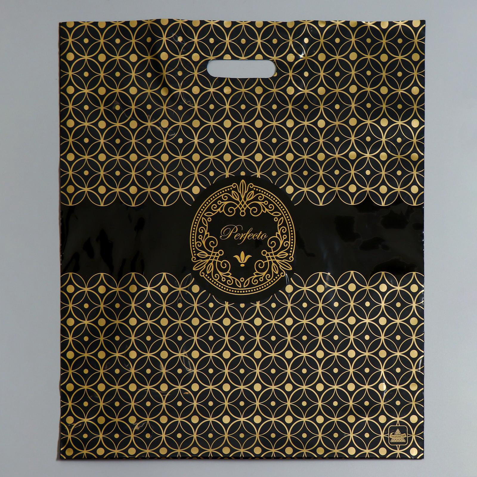 Пакет "Перфекто Квадро", полиэтиленовый с вырубной ручкой, 90 мкм 42x48 см, 42x48x0.1 см., ТикоПластик, Россия