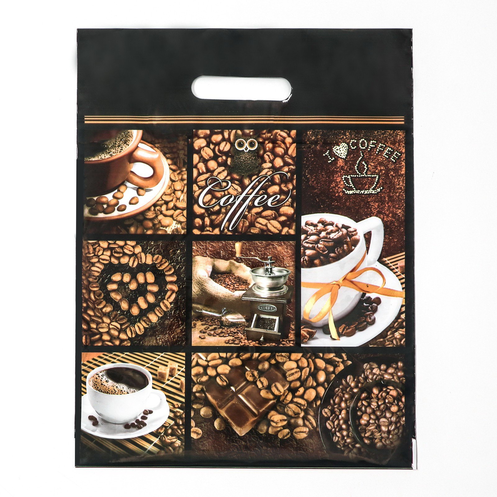 Пакет "Кофе", полиэтиленовый с вырубной ручкой, 60 мкм 31x40 см, Интерпак, Россия