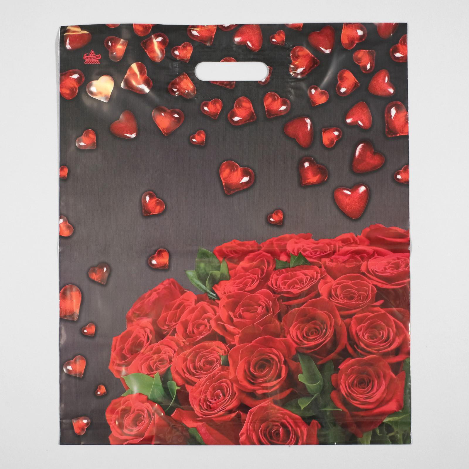 Пакет "Мармеладные сердечки", полиэтиленовый с вырубной ручкой, 60 мкм, 38x45 см, 38x45 см., ТикоПластик, Россия