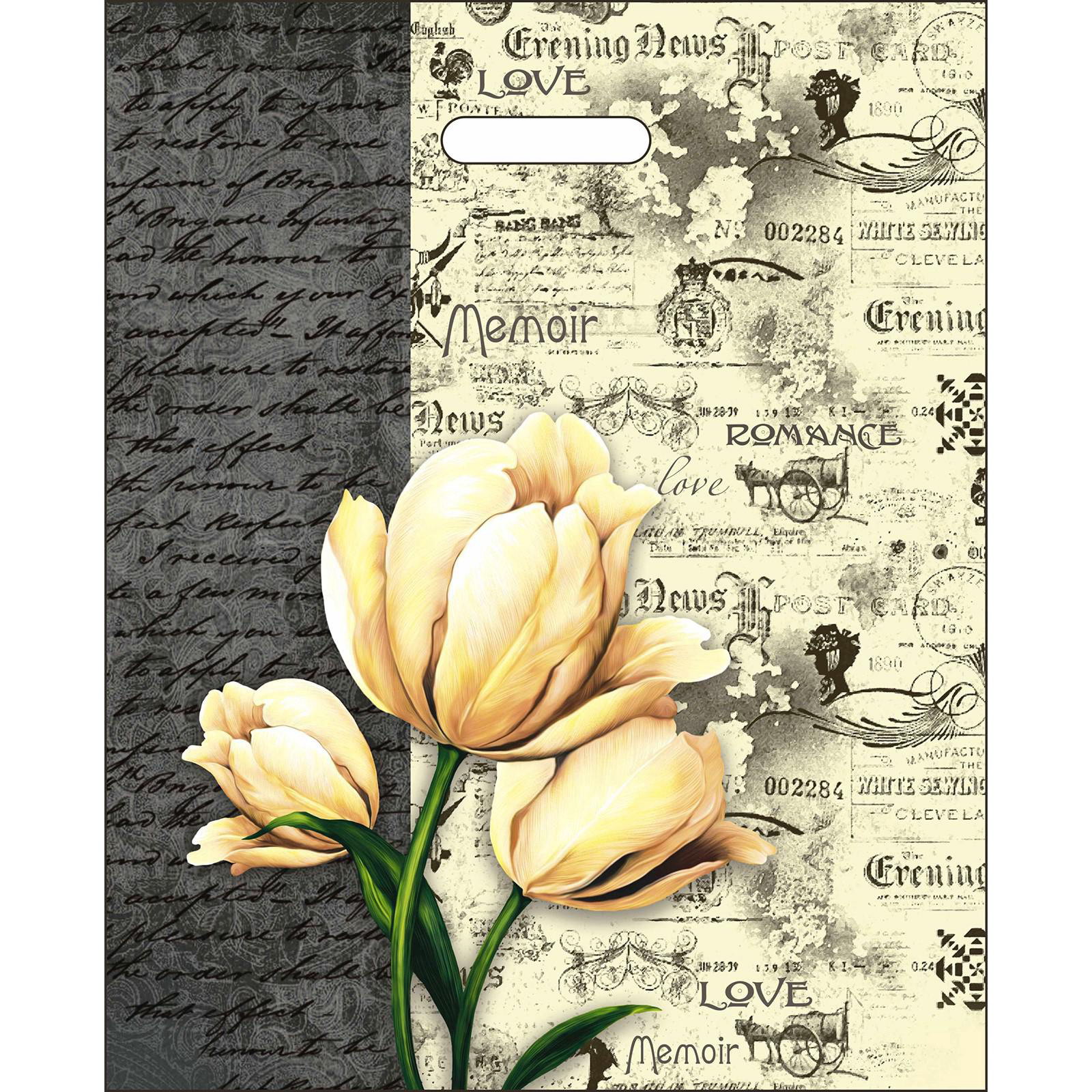 Пакет "Мемуары", полиэтиленовый, с вырубной ручкой, 38x47 см, 60 мкм, Интерпак, Россия