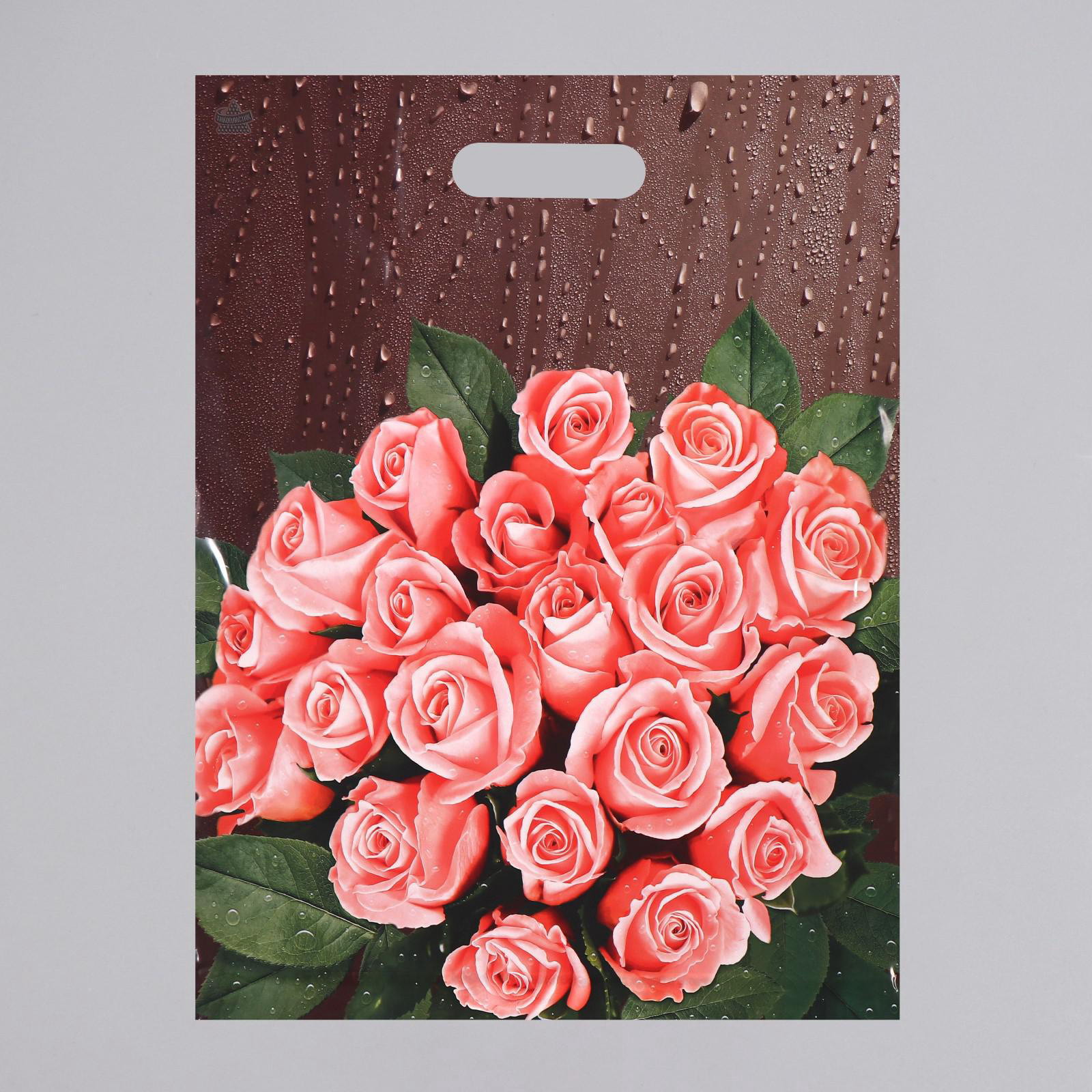 Пакет "Розы после дождя", полиэтиленовый с вырубной ручкой, 60 мкм, 38x45 см, ТикоПластик, Россия