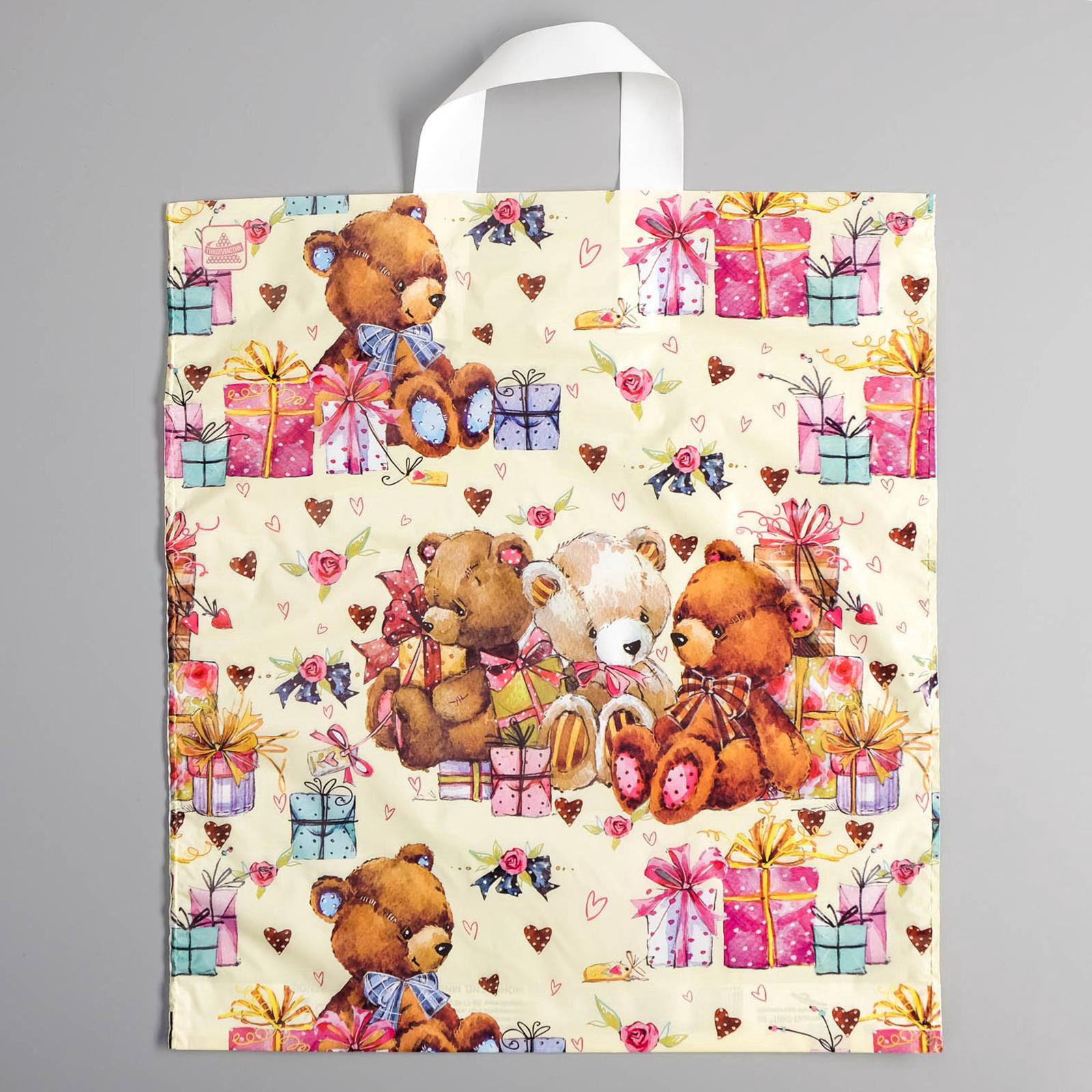 Пакет "Мишки с подарками", полиэтиленовый с петлевой ручкой, 42x38 см, 33 мкм, 38x42x0.1 см., ТикоПластик, Россия