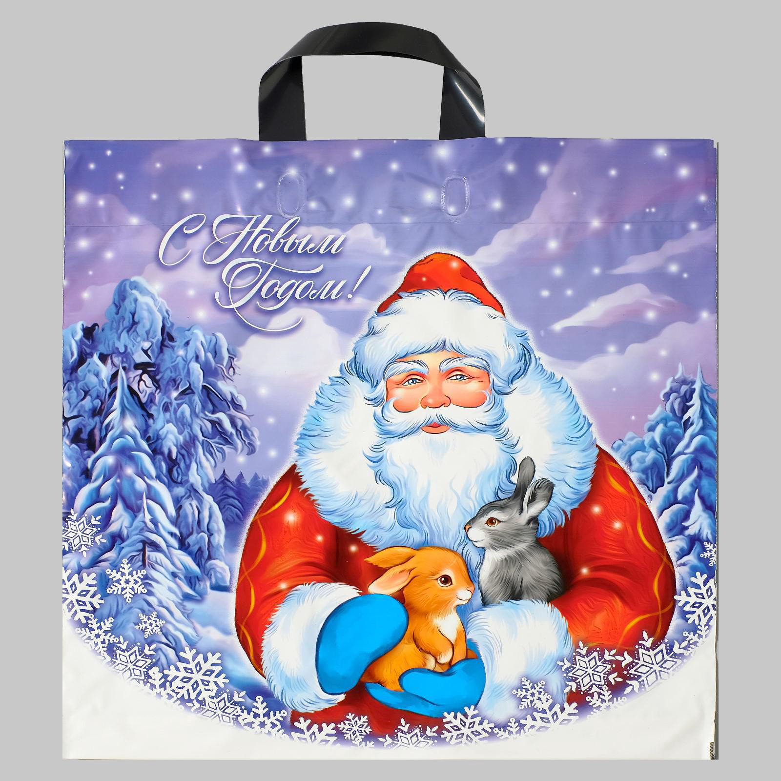 Пакет подарочный новогодний "Забота", полиэтиленовый с петлевой ручкой, 44x44 см, Интерпак, Россия