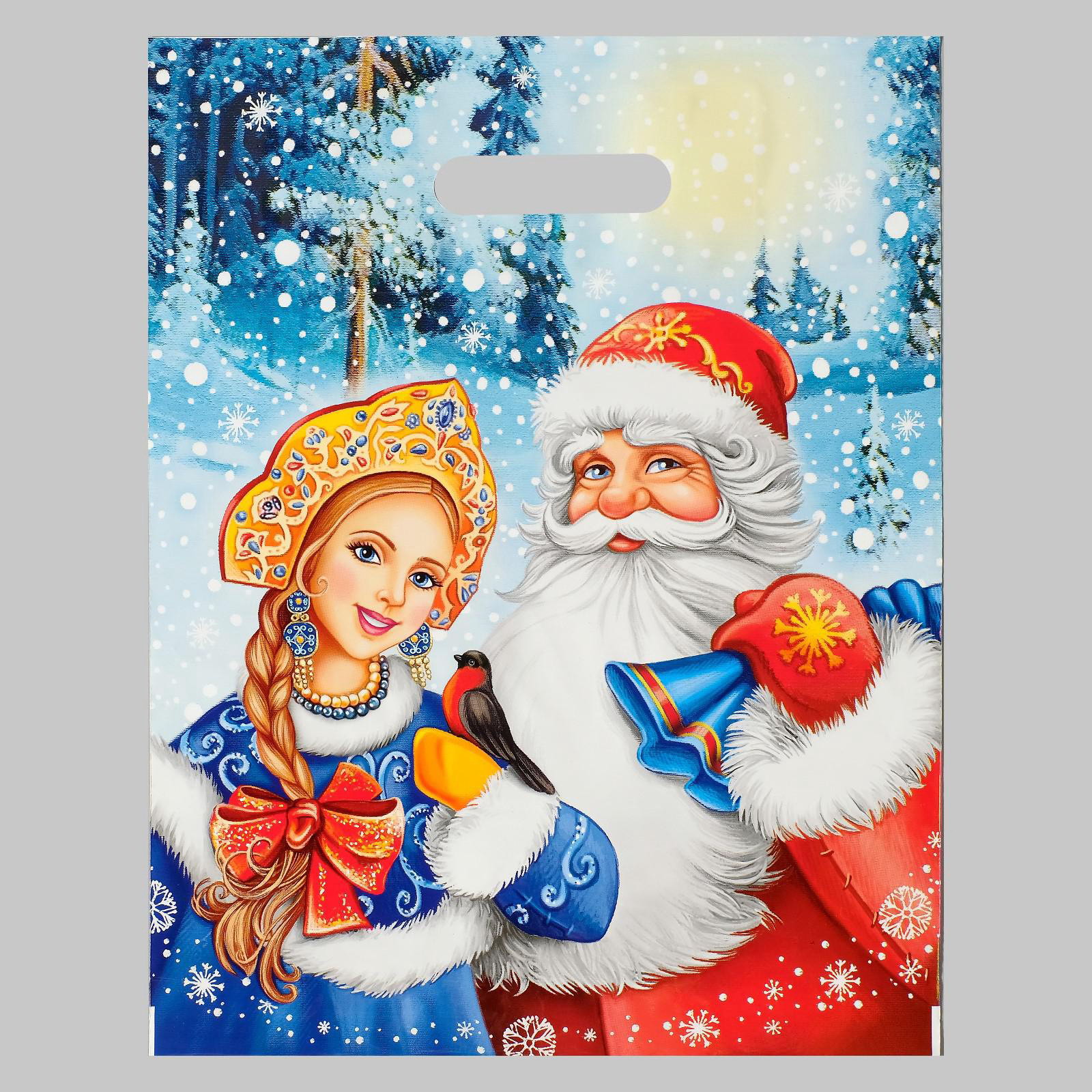 Пакет "Дед Мороз и Снегурочка", полиэтиленовый с вырубной ручкой, 31x40 см, Интерпак, Россия