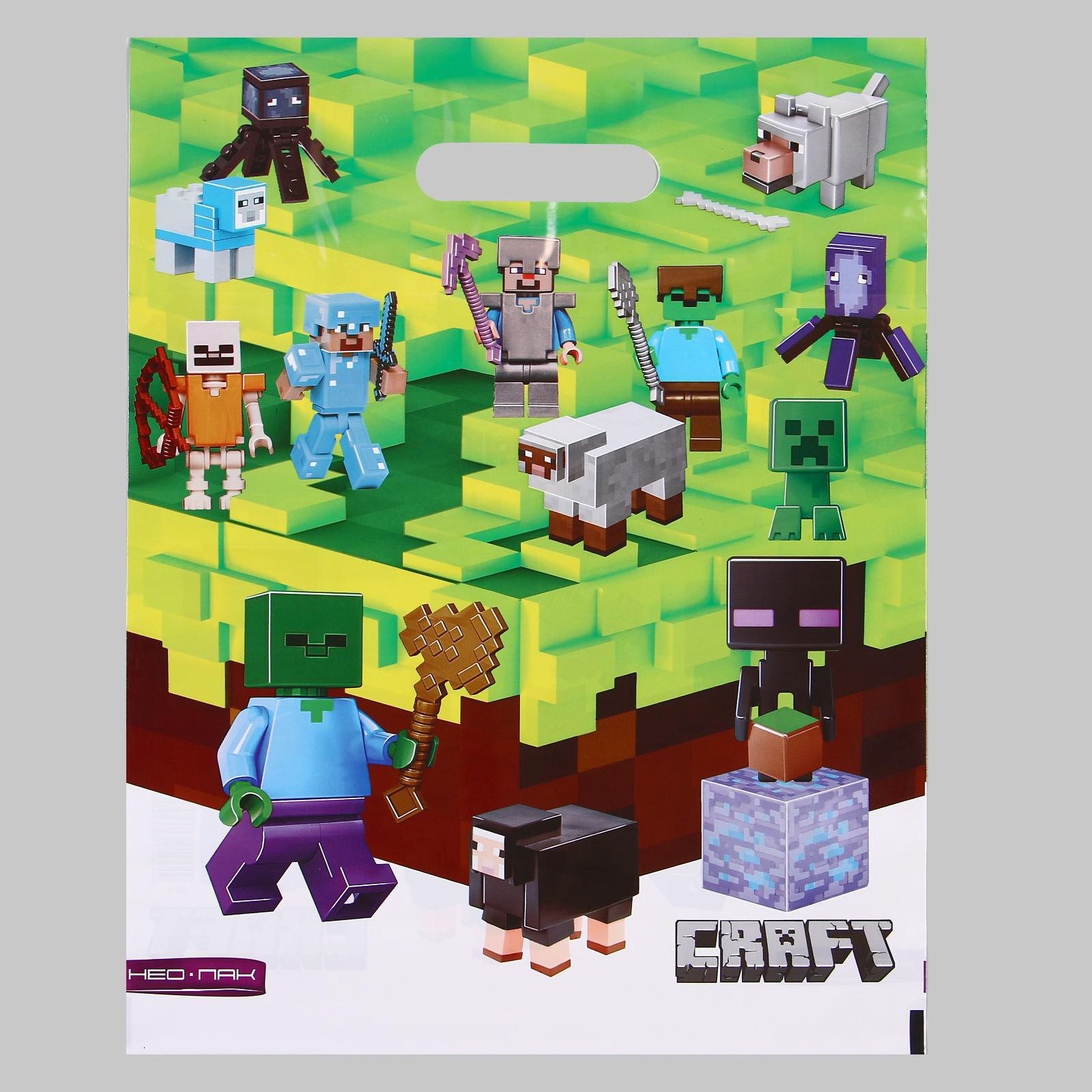 Пакет "МайнКрафт", полиэтиленовый с вырубной ручкой, 60 мкм 30x40 см, 29x40 см., НЕО-ПАК, Россия