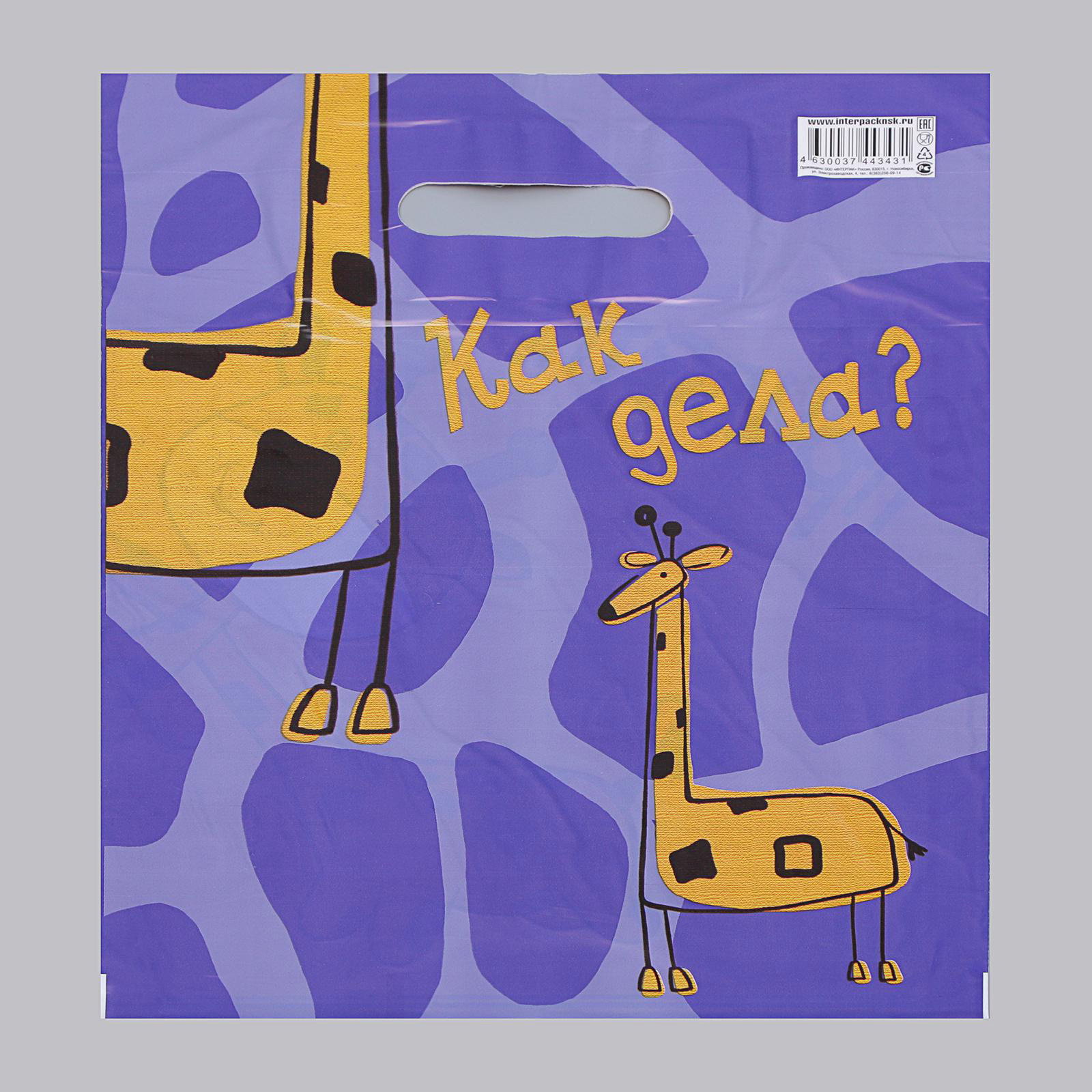 Пакет "Жирафики - двухсторонний", полиэтиленовый с вырубной ручкой, 30 мкм 30x38 см, Россия