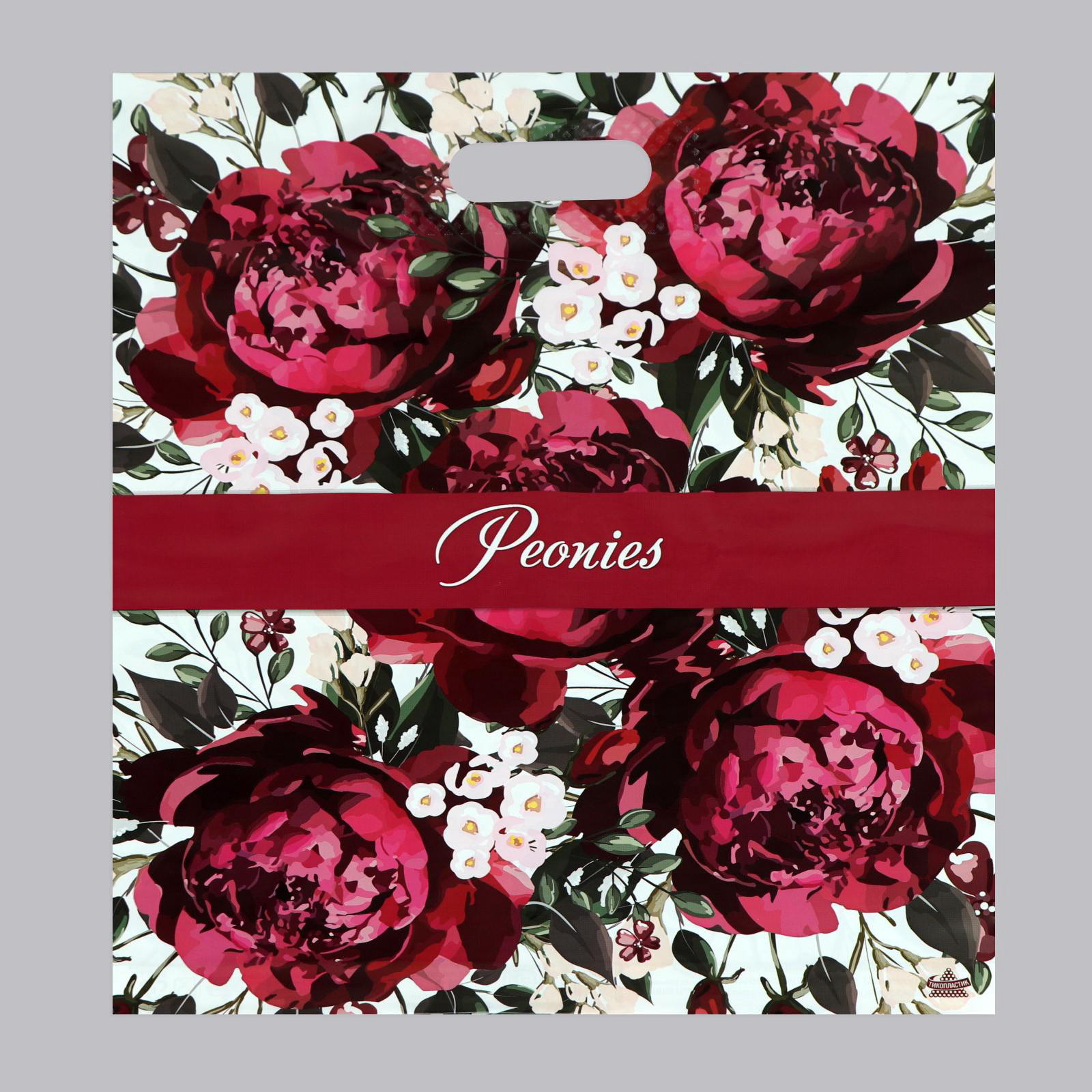 Пакет "Бордовые пионы", полиэтиленовый с вырубной ручкой, 60 мкм, 38x45 см, Россия