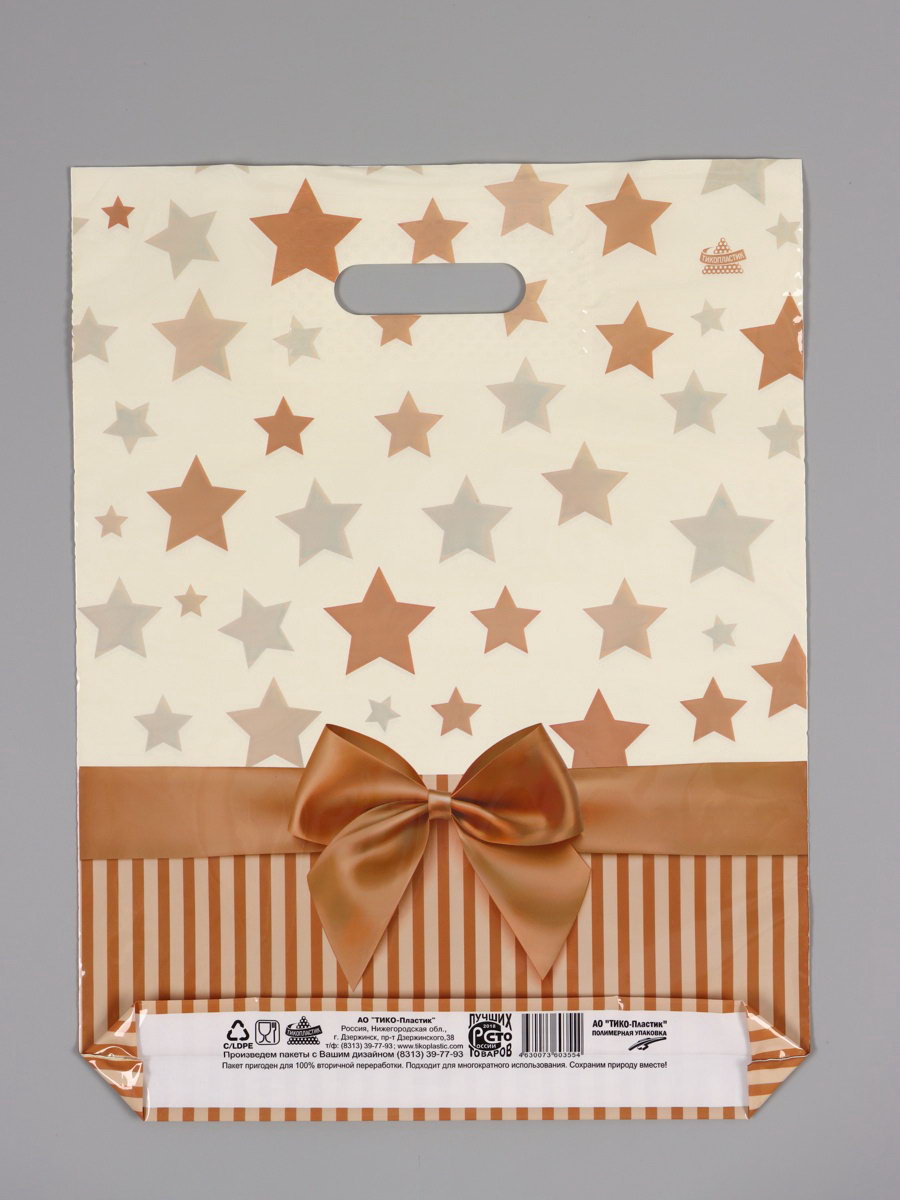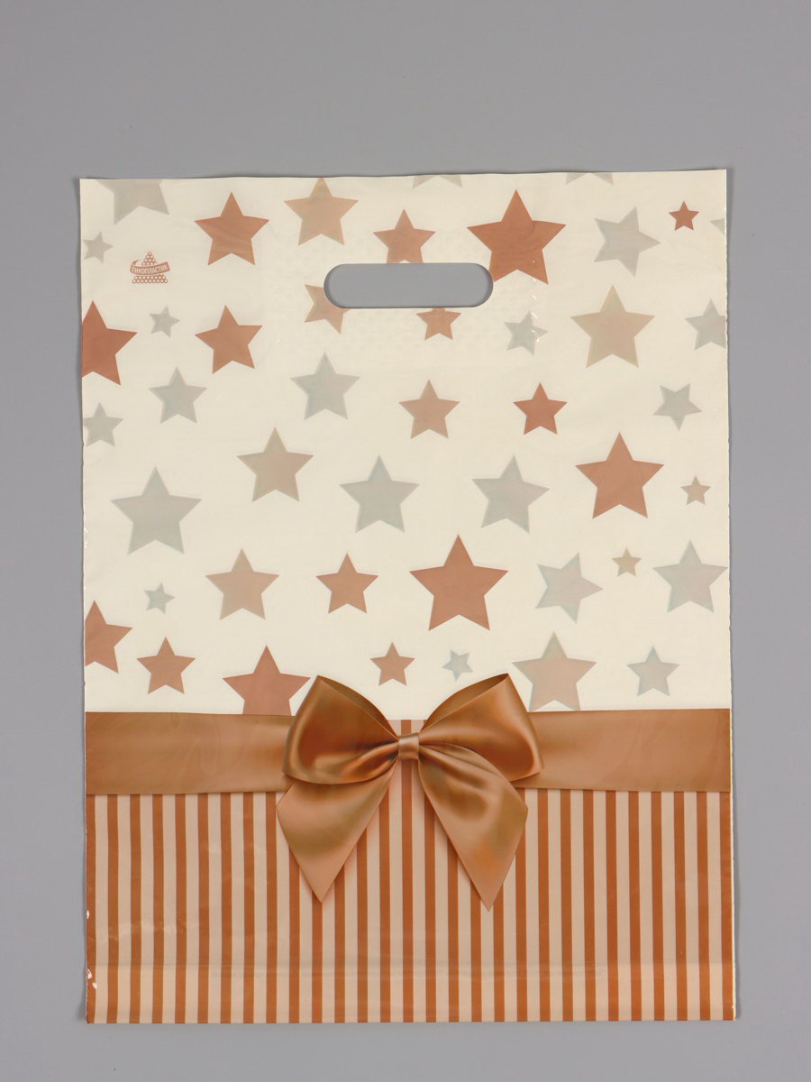 Пакет "Звезды в подарок", полиэтиленовый с вырубной ручкой, 31x40 см, 60 мкм, 31x40 см., Россия