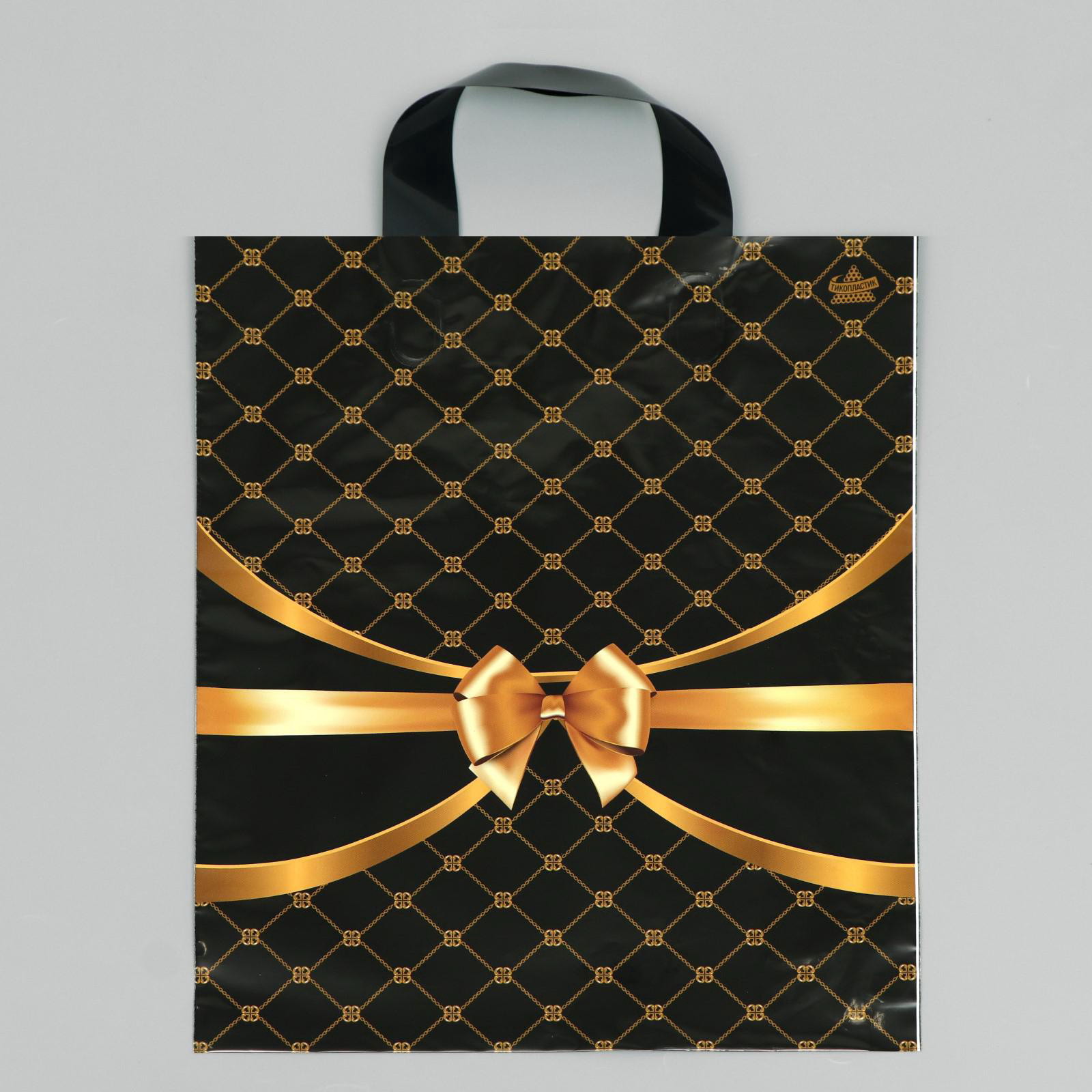 Пакет "Золотые сети", полиэтиленовый с петлевой ручкой, чёрный, 35x28 см, 55 мкм, 20x34 см., Россия