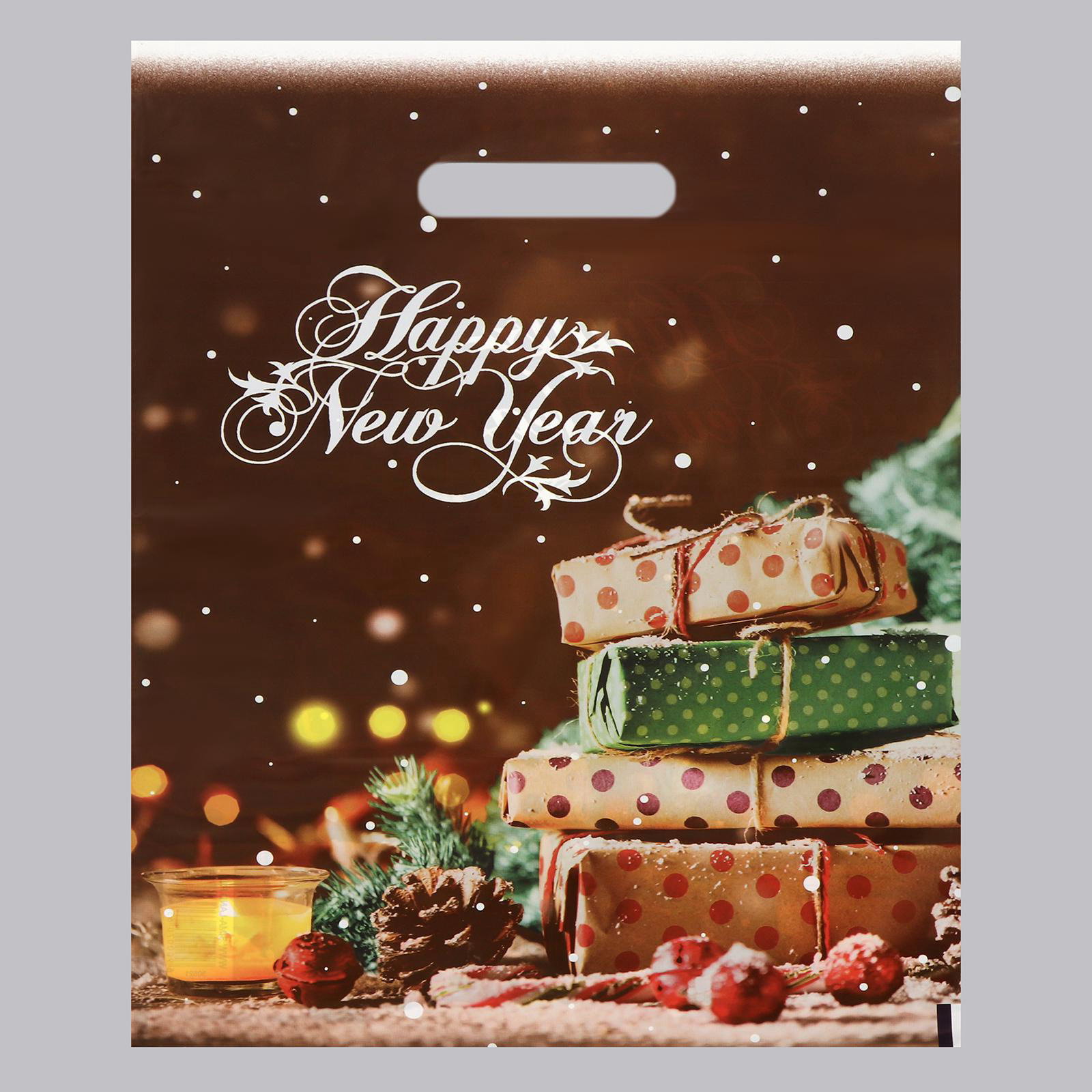Пакет подарочный новогодний "Новогодние подарки", полиэтиленовый с вырубной ручкой, 30x40 см, Россия