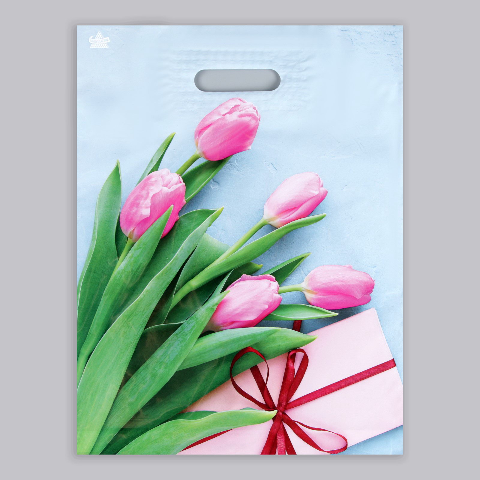 Пакет "Тюльпаны в подарок", полиэтиленовый, с вырубной ручкой, 31x40 см, 60 мкм, ТикоПластик, Россия