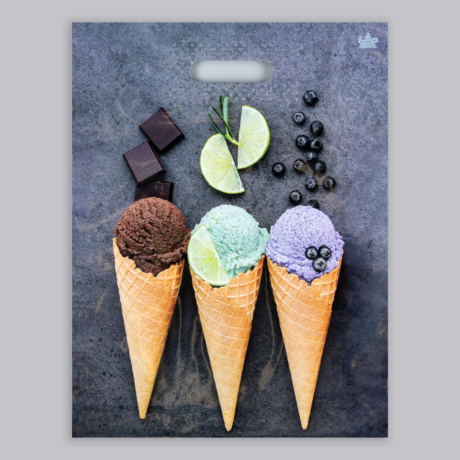 Пакет "Мороженое", полиэтиленовый, с вырубной ручкой, 31x40 см, 60 мкм, 30x40 см., ТикоПластик, Россия