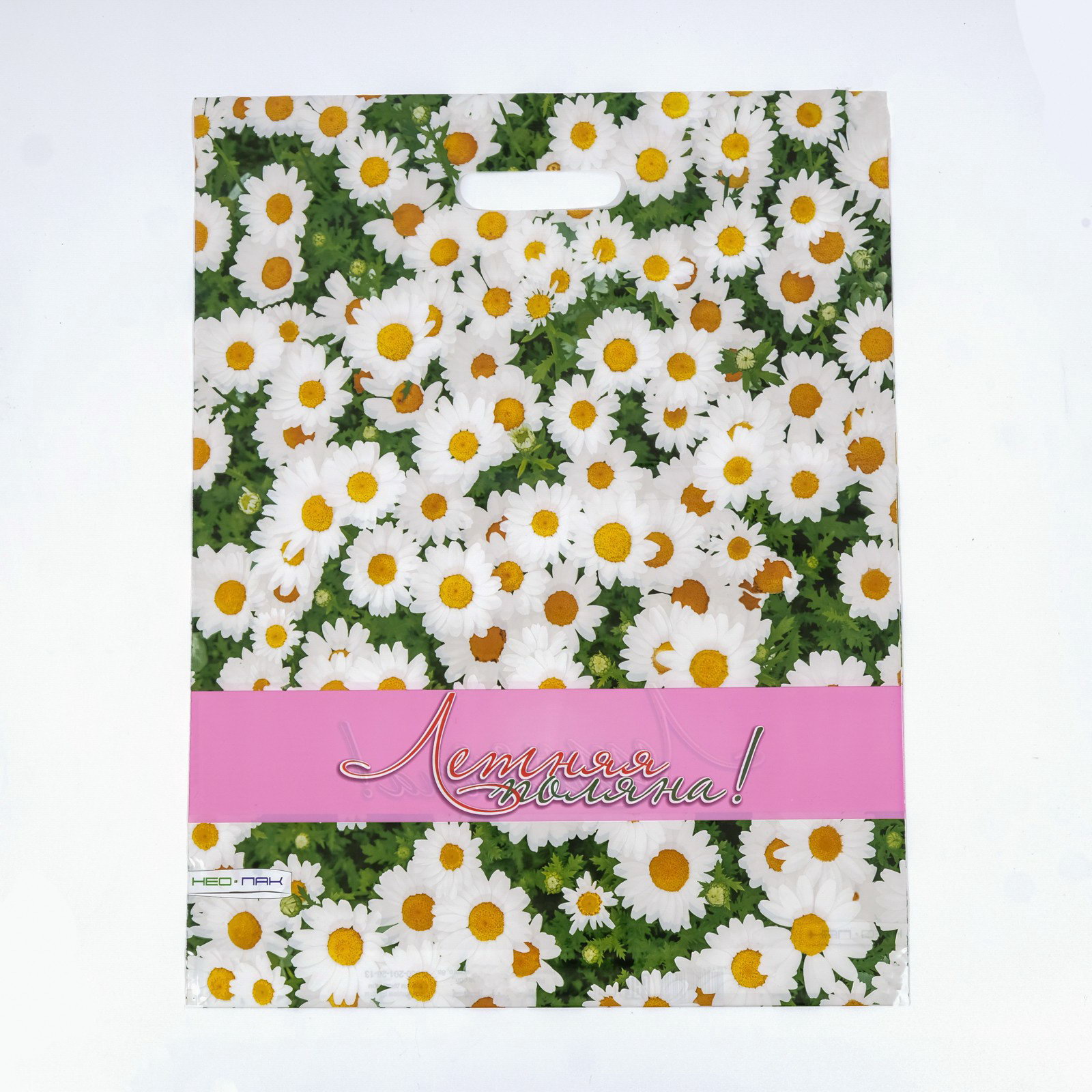 Пакет "Летняя поляна", полиэтиленовый, с вырубной ручкой, 38x47 см, 60 мкм, Россия