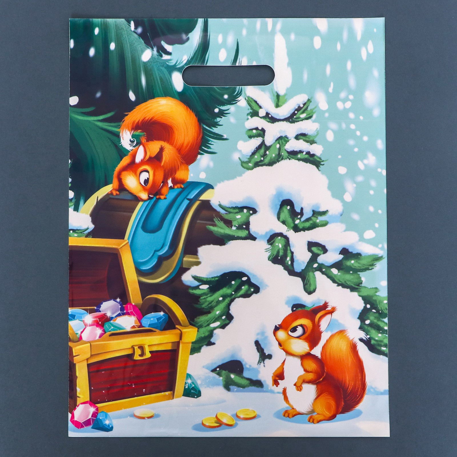 Пакет новогодний "Бельчата", глянец полиэтиленовый с вырубной ручкой, 30.5x40 см, 60 мкм, Россия