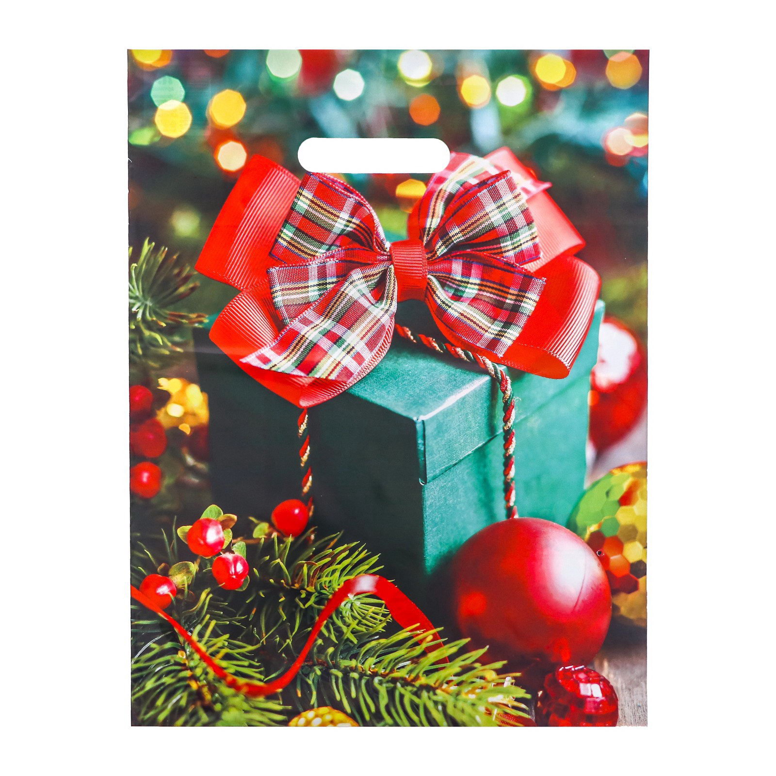 Пакет новогодний "Зеленый подарок", глянец полиэтиленовый с вырубной ручкой, 31x40 см, 60 мкм, Россия