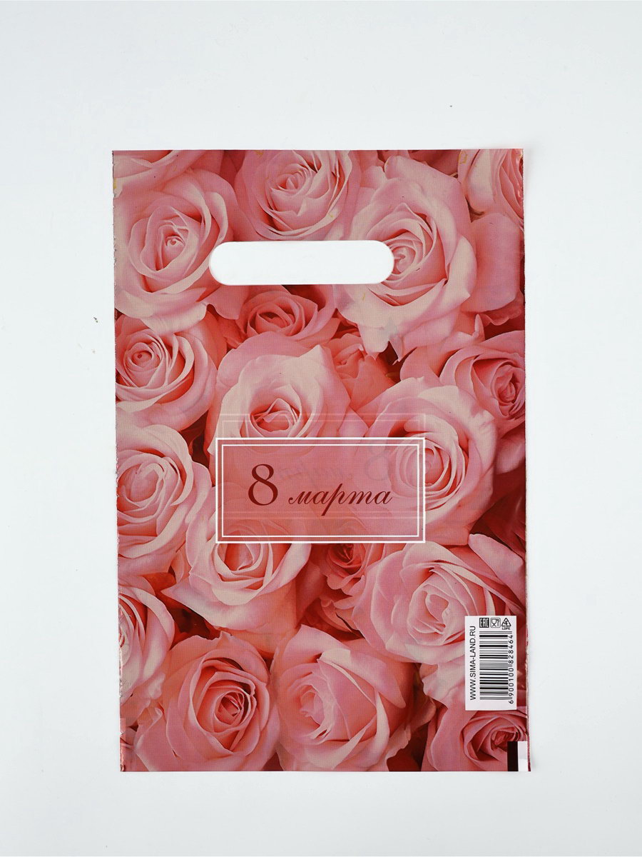 Пакет подарочный "8 Марта", полиэтиленовый с вырубной ручкой, 20x30 см, 30 мкм, UPAK LAND, Россия