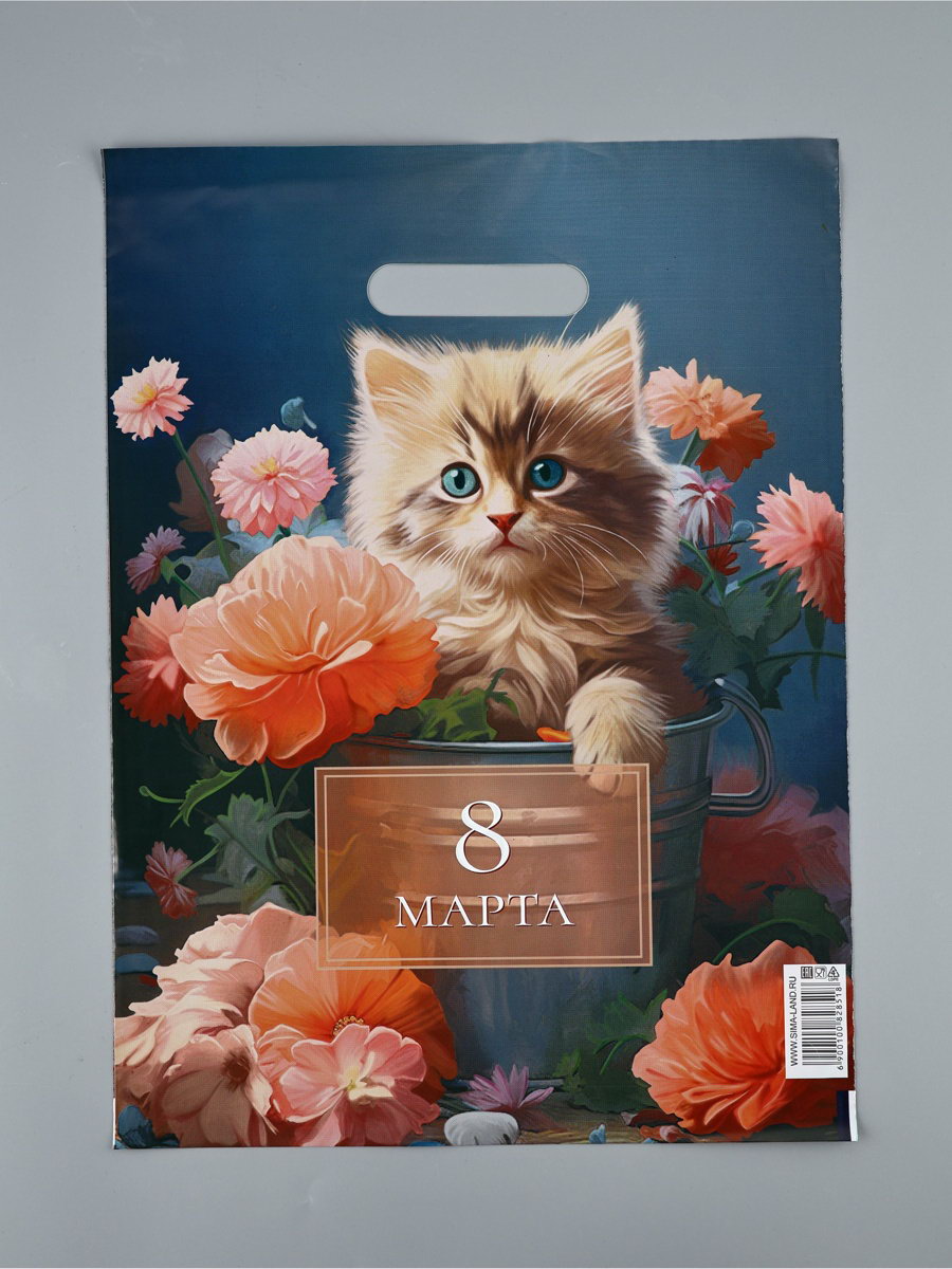 Пакет подарочный "Нежного 8 Марта", полиэтиленовый с вырубной ручкой, 30x40 см, 50 мкм, UPAK LAND, Россия