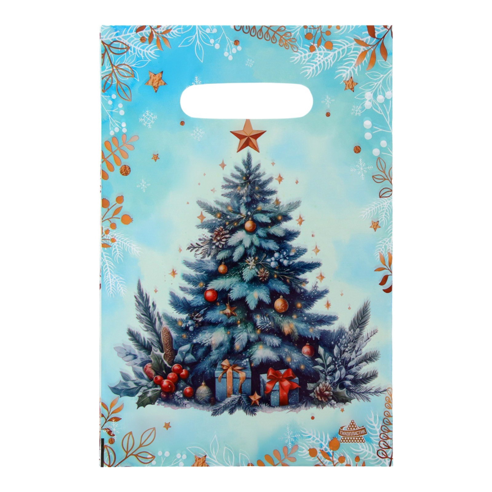 Пакет подарочный новогодний "Акварельная ель", полиэтиленовый с вырубной ручкой, 30x20 см, Россия