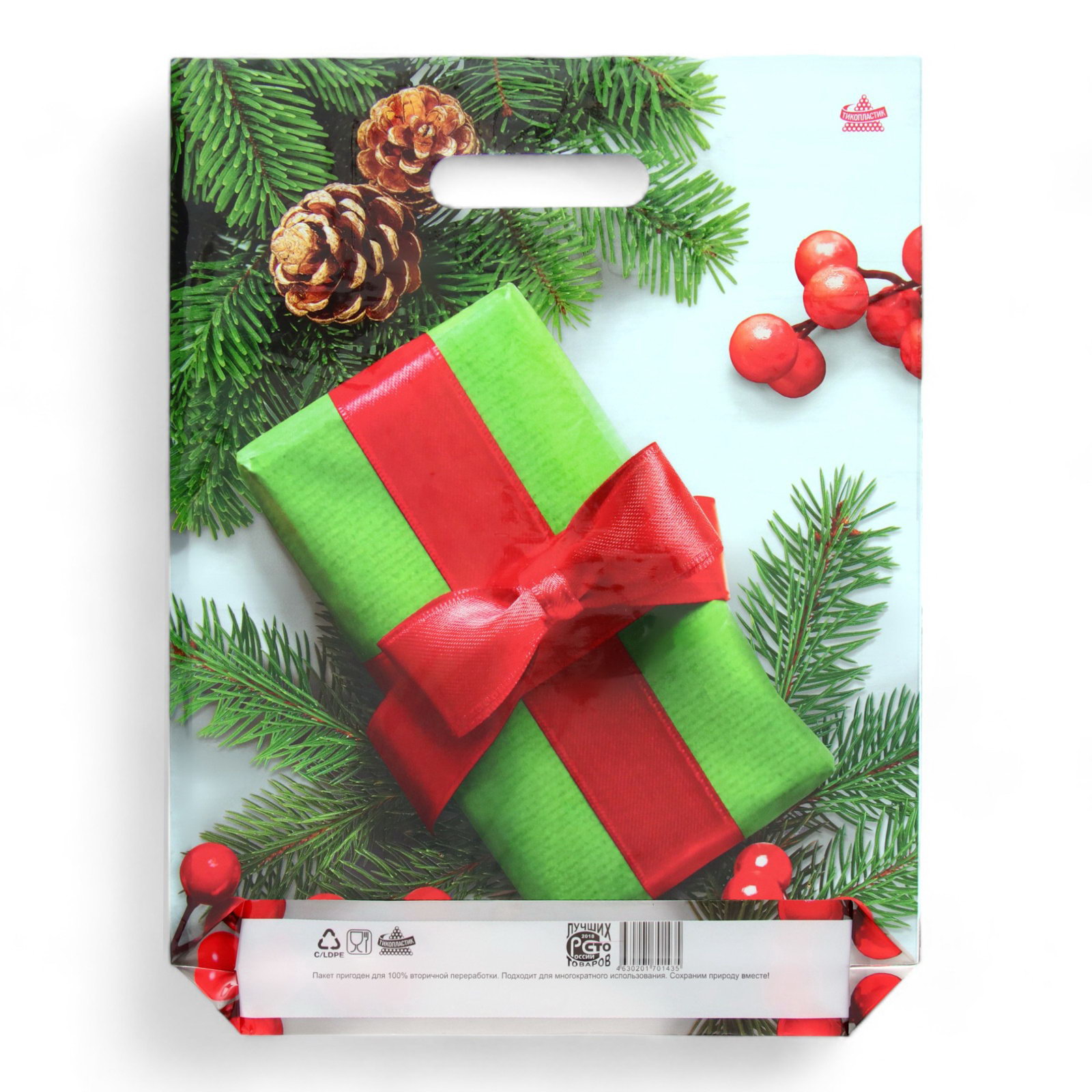 Пакет подарочный новогодний "Калина в подарок", полиэтиленовый с вырубной ручкой, 40x31 см, Россия