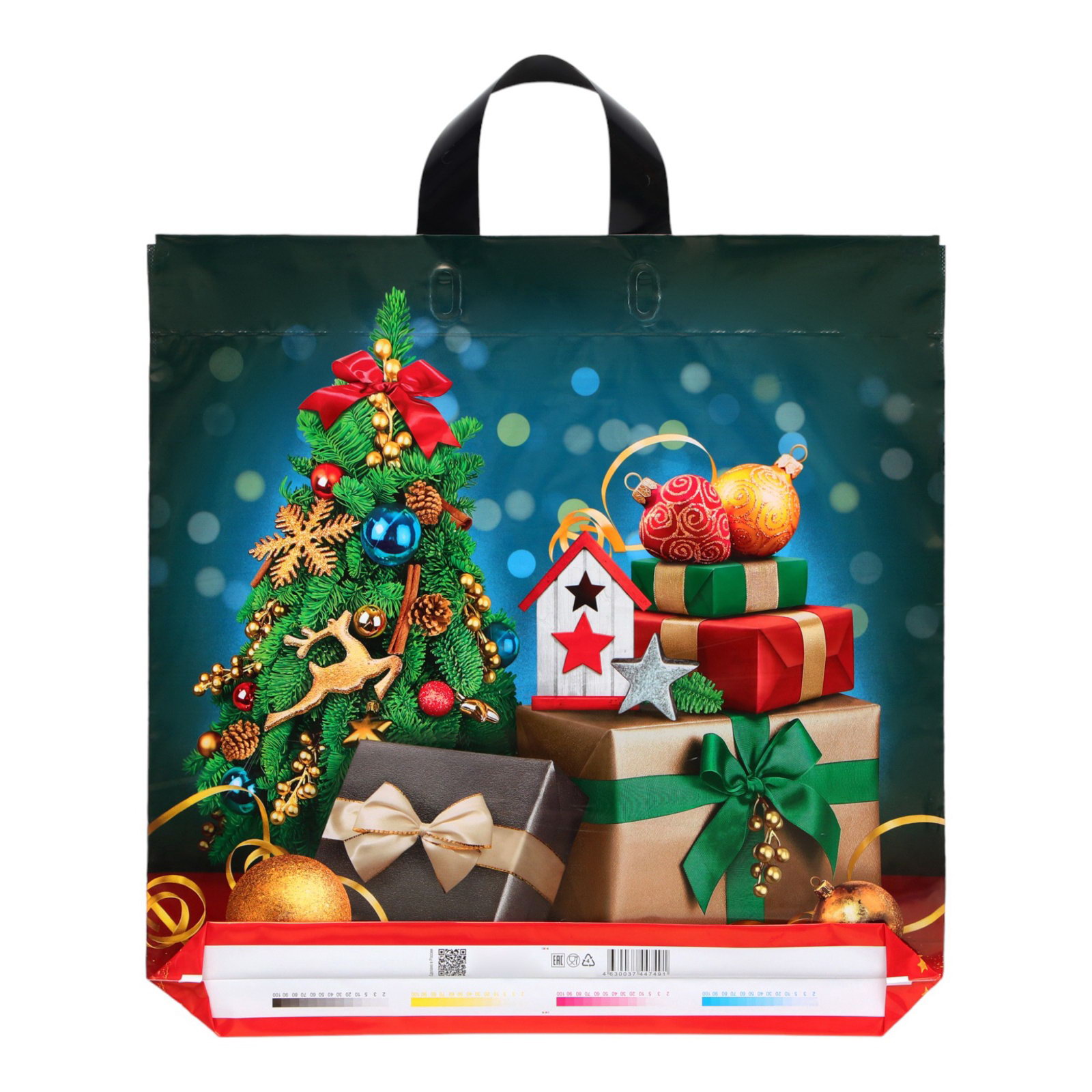 Пакет новогодний "Подарочный бум", полиэтиленовый с петлевой ручкой, 44x44 см, Россия