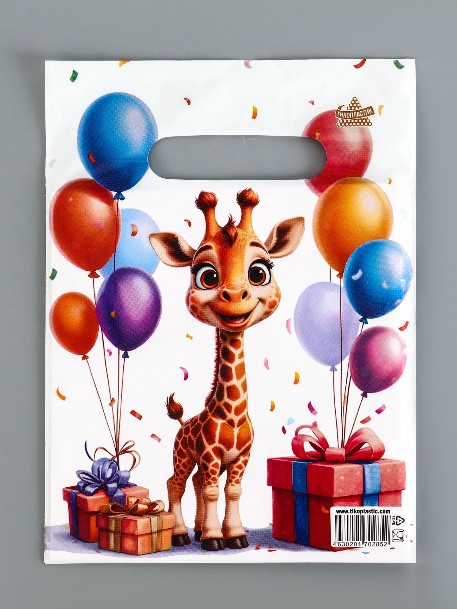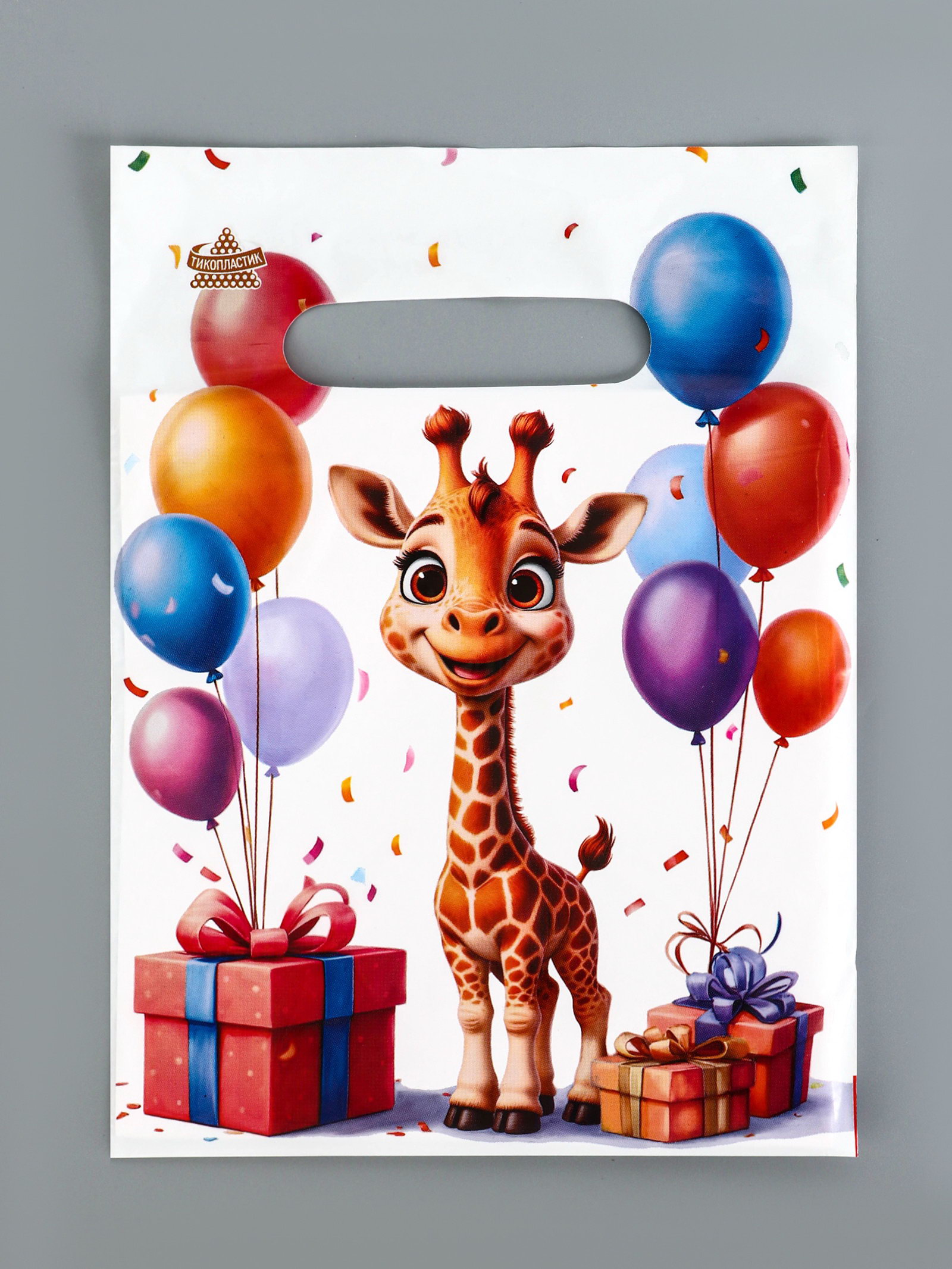 Пакет подарочный "Жирафик", полиэтиленовый с вырубной ручкой, 19x25 см, 30 мкм, Россия