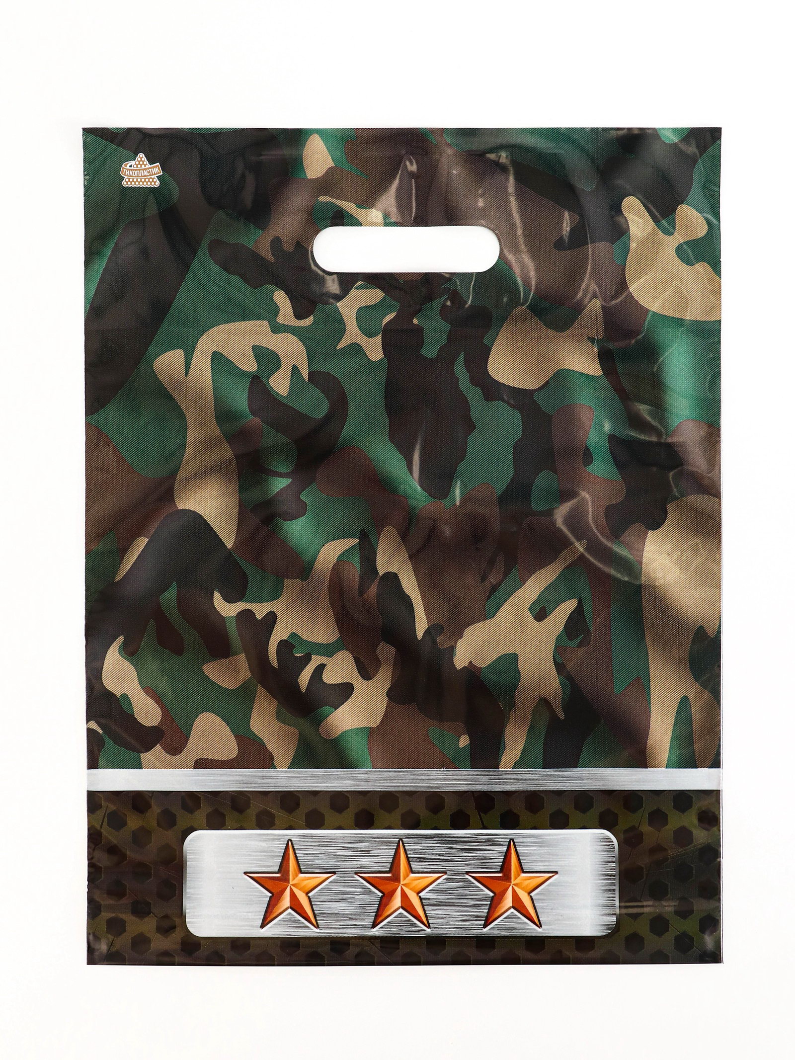 Пакет подарочный "Камуфляж", полиэтиленовый с вырубной ручкой, 31x40 см, 60 мкм, Россия
