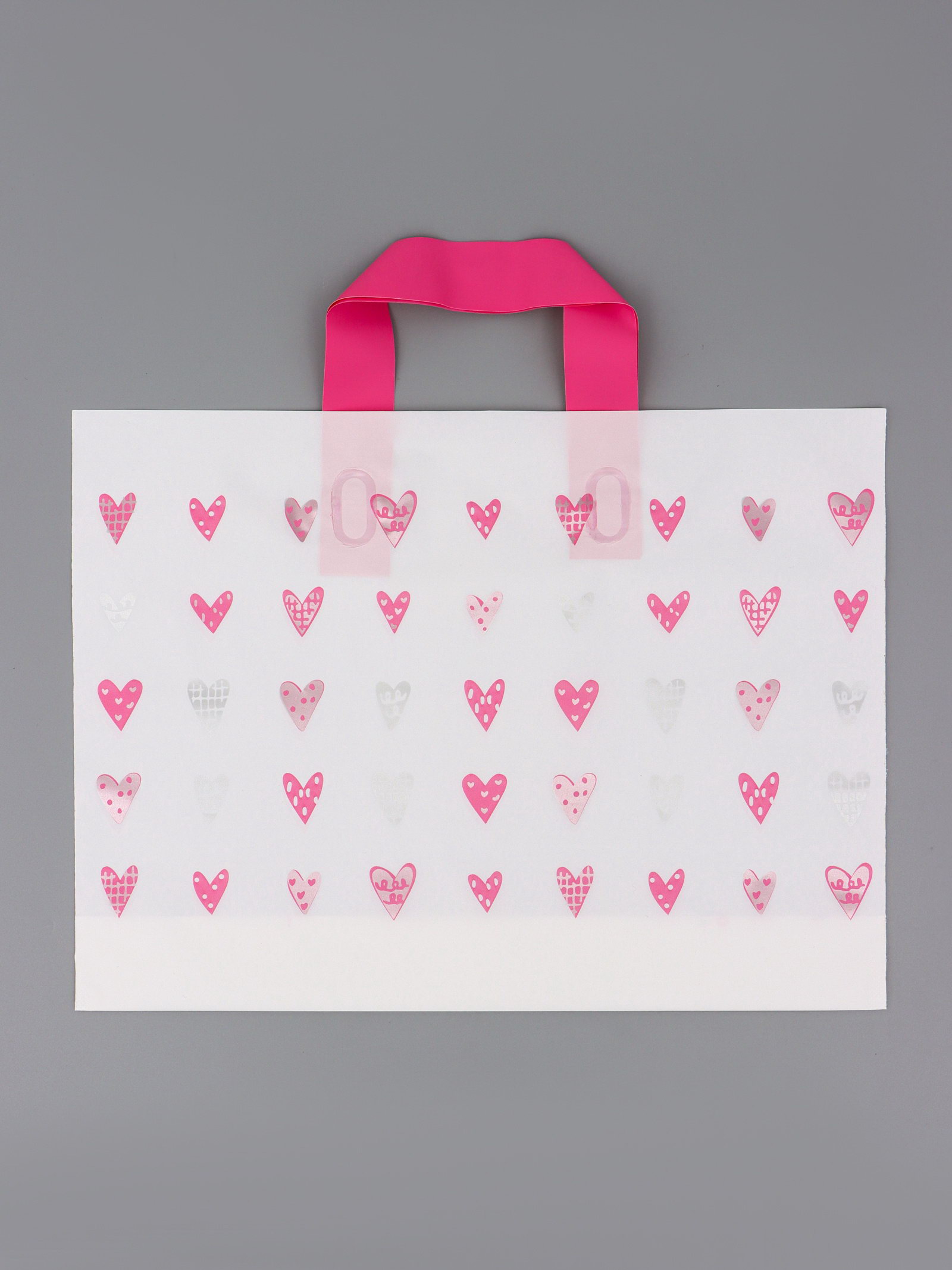 Пакет с петлевой ручкой "Сердечки", полиэтиленовый, 35x25x8 см 80 мкм, 8x35x25 см., UPAK LAND, Китай