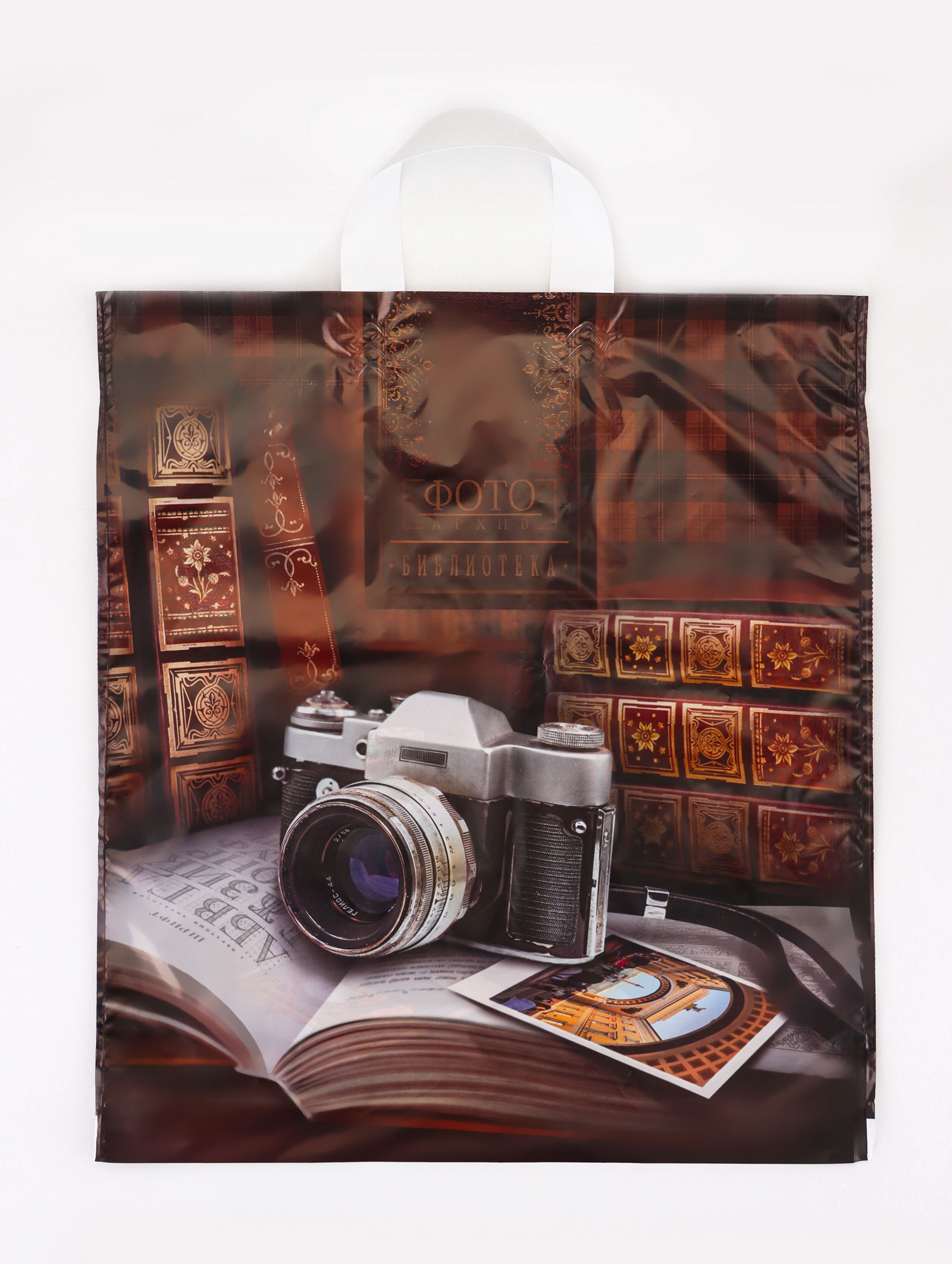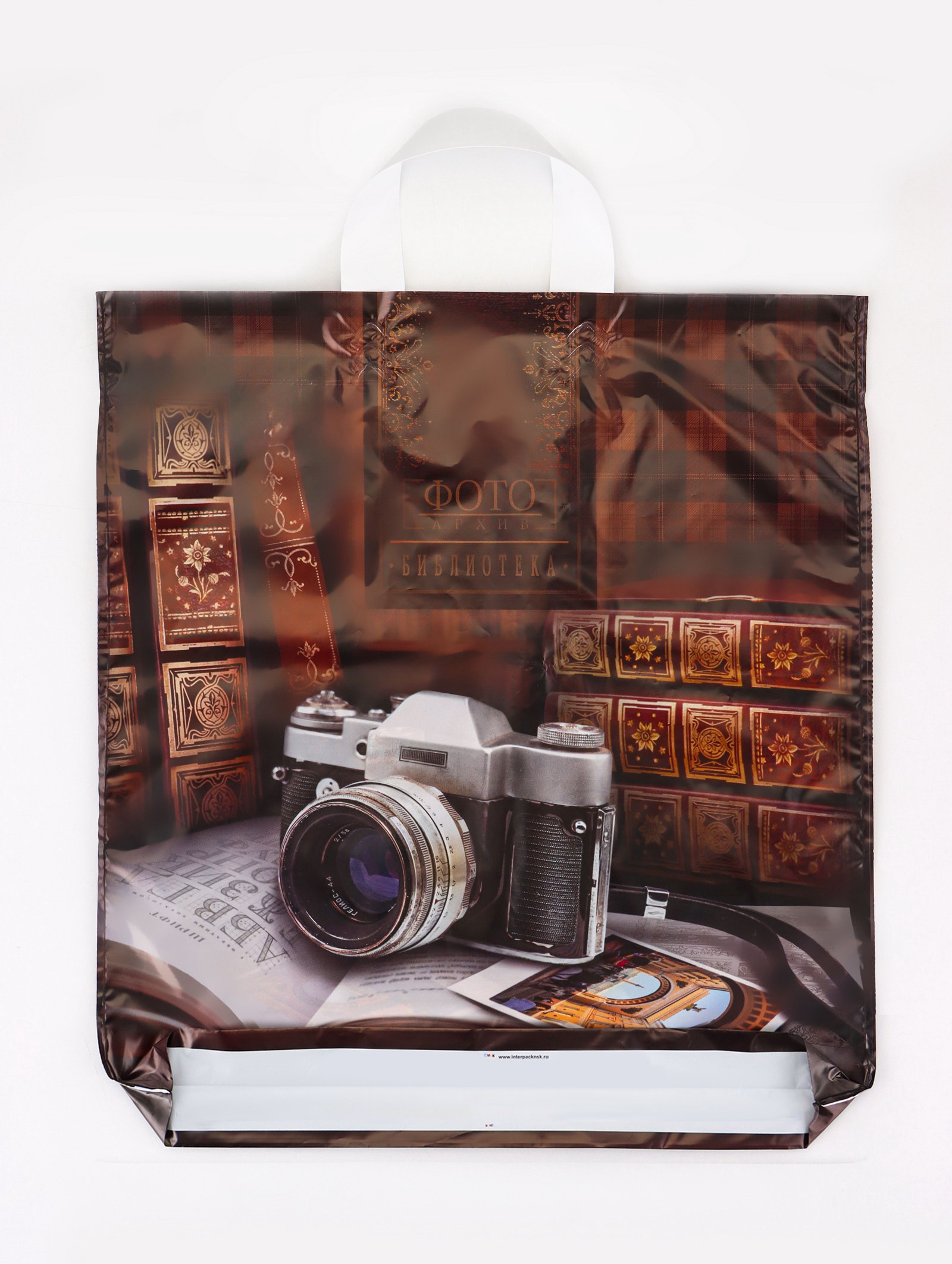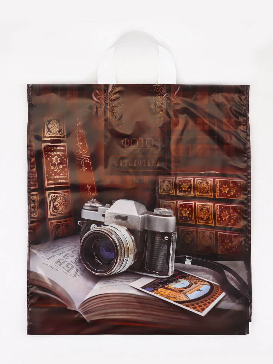 Пакет подарочный "Библиотека", полиэтиленовый с петлевой ручкой, 38x42 см, 40 мкм, Интерпак, Россия